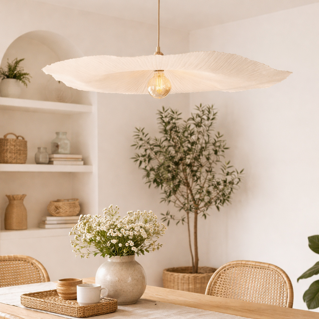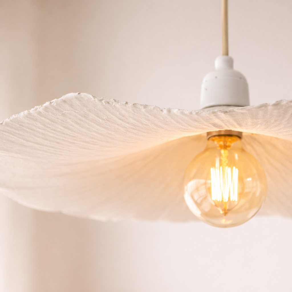 - A estrutura leve permite uma difusão uniforme da luz, ideal para ambientes onde se procura uma iluminação mais envolvente e menos direta.