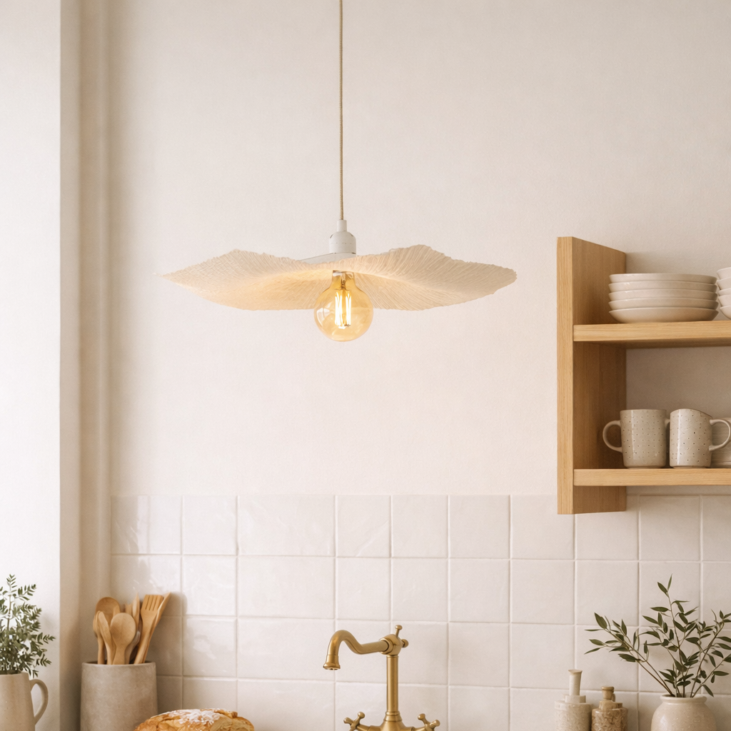 - A estrutura leve permite uma difusão uniforme da luz, ideal para ambientes onde se procura uma iluminação mais envolvente e menos direta.