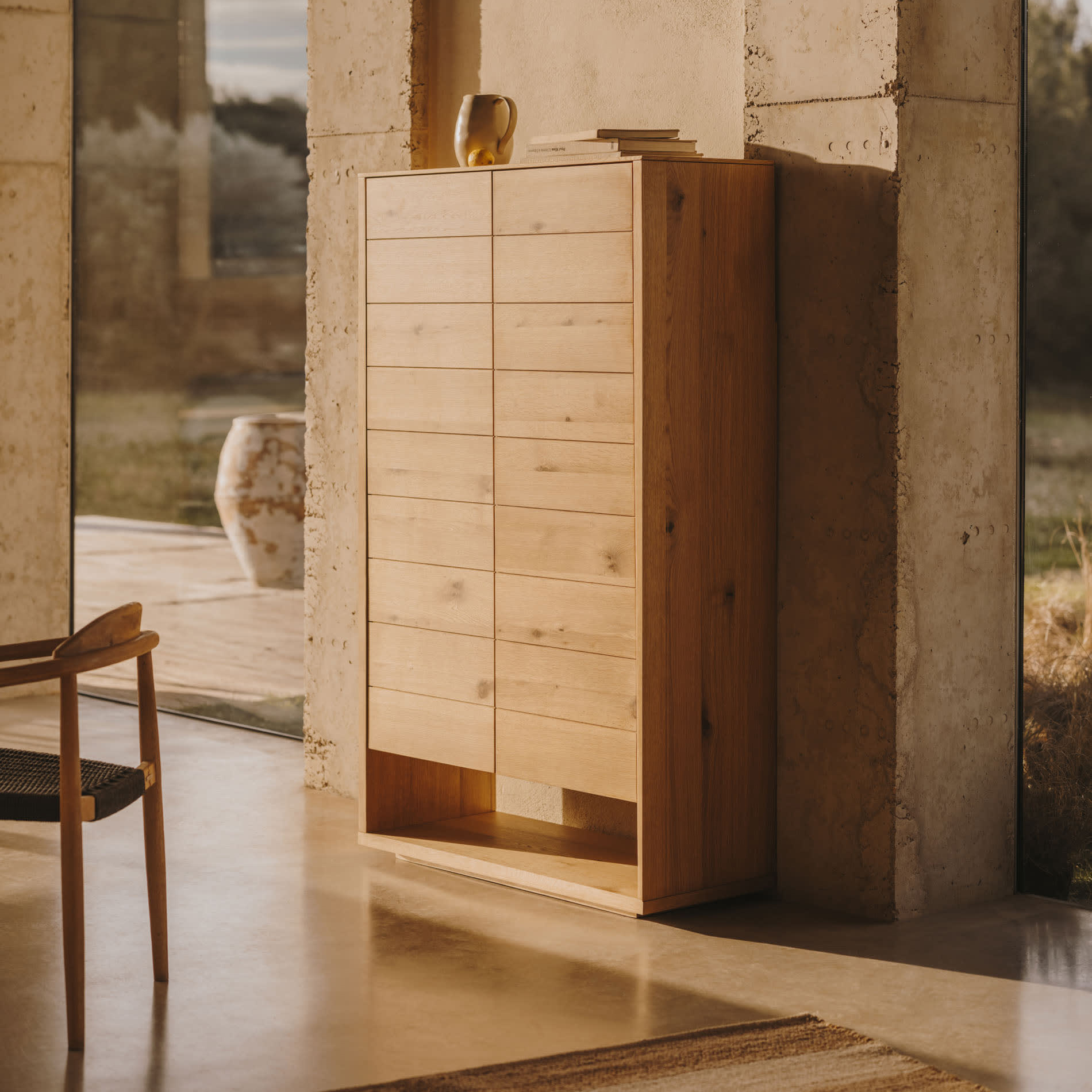 - Fabricado em chapa de carvalho com acabamento natural.
