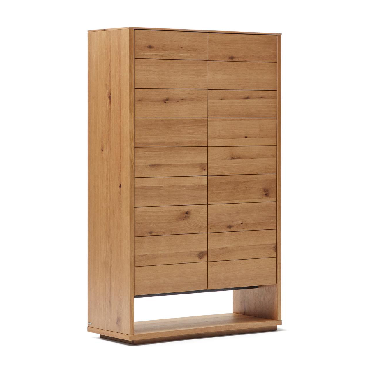 - Materiais: 75% MDF E0 (painel de fibra de densidade média com baixas emissões de formaldeído classe E0), 25% Chapa de carvalho (Quercus alba)