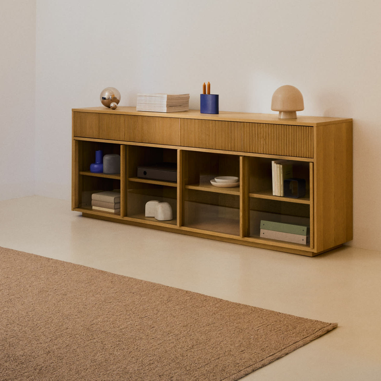 - Uma coleção que responde ao design simples de ripas verticais e funcional.