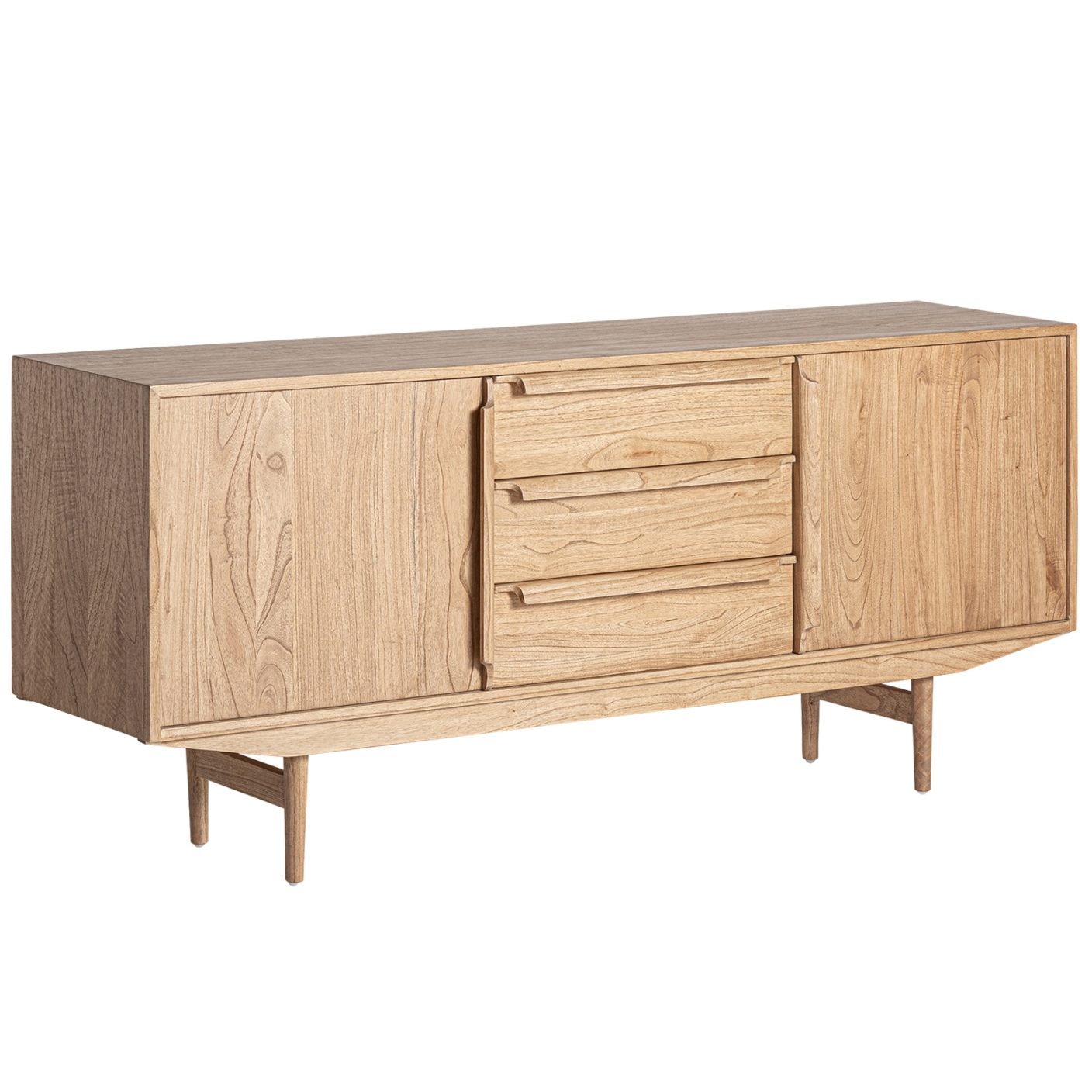 - O aparador Niry é composto por três gavetas e duas portas com prateleiras no interior que serão muito úteis para manter o seu espaço limpo e arrumado.