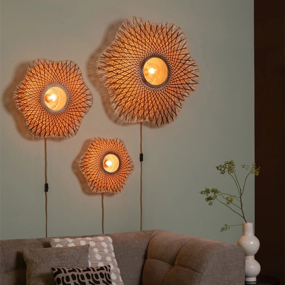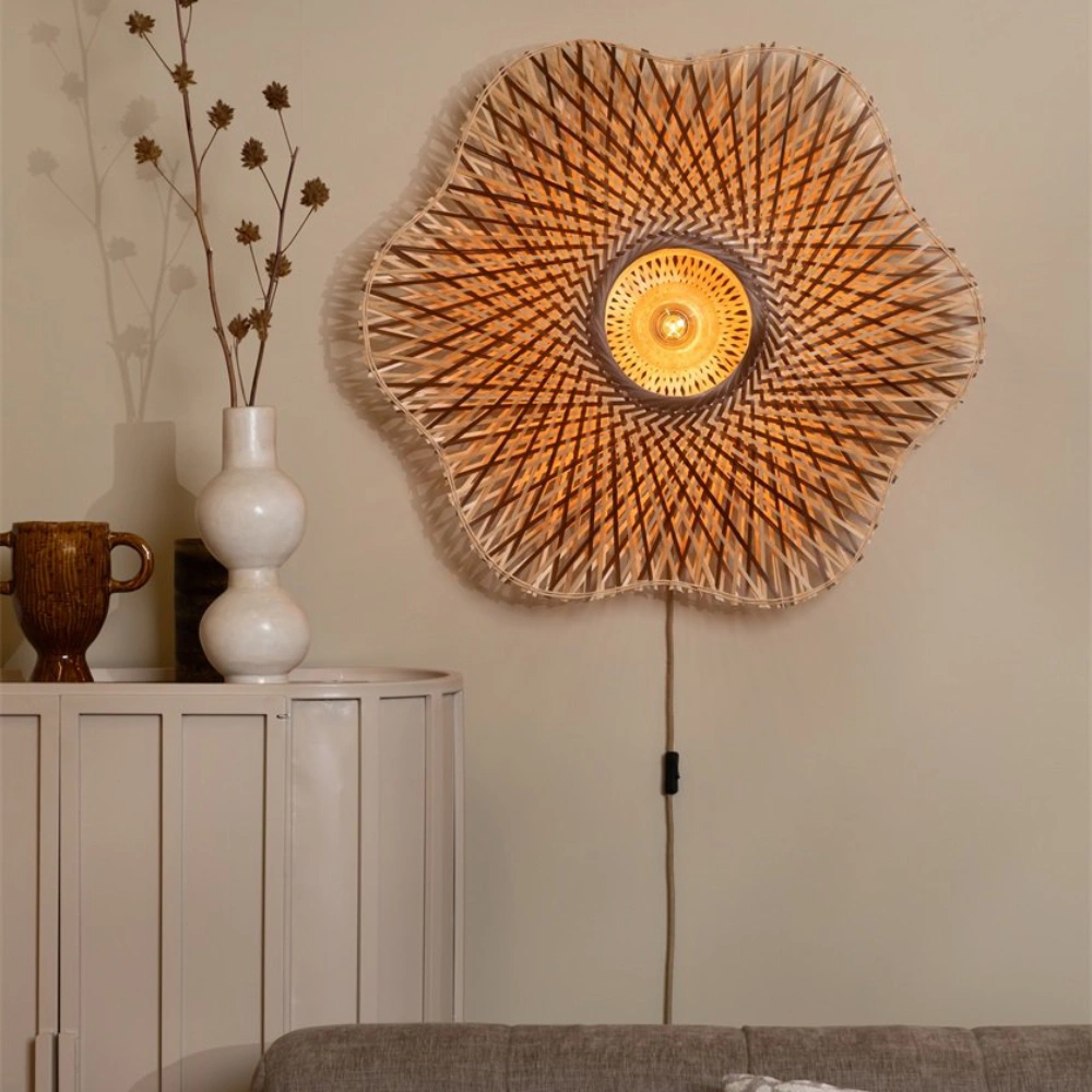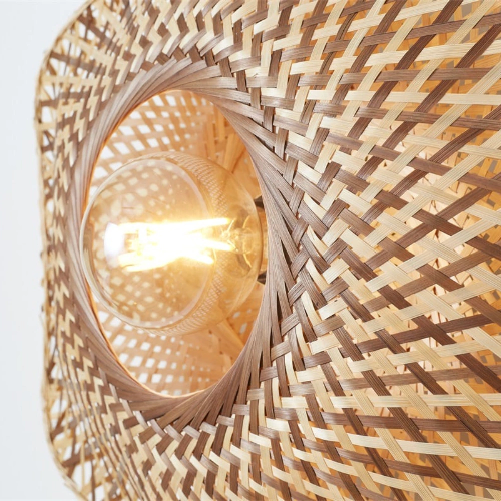 - Elegante e ecológico, a estrutura de bambu trançado permite que a luz suave passe, lançando um brilho quente e convidativo.