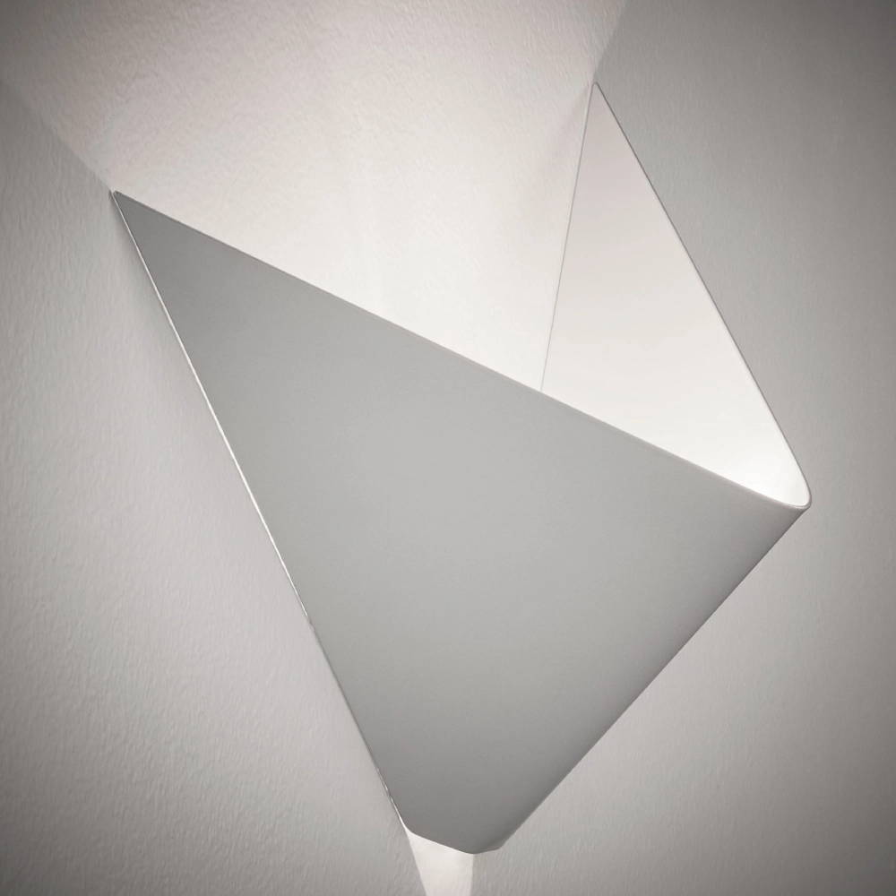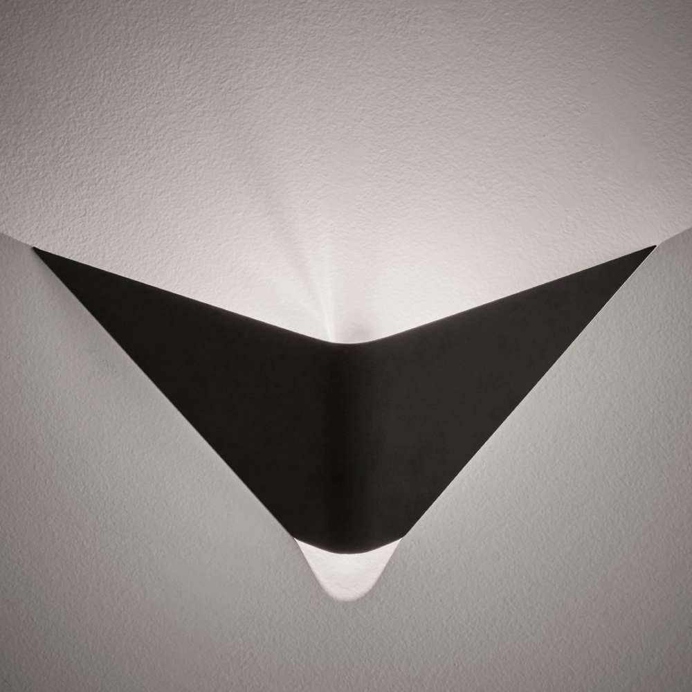 - O aplique Geneve é uma peça em forma de "V" que projeta a luz para cima, ideal para realçar corredores ou áreas de passagem com design cuidado.