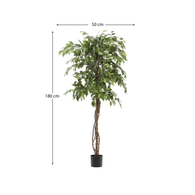 Árvore artificial Ficus Benjamina, 180cm 109,00 € Desconto de %. IVA incluído. Partilhar Comprar Contactar SKU: JG4D1700021SS06 Dê um toque de verde aos seus espaços sem desperdiçar uma gota de água. A árvore artificial Ficus Benjamina é indicada para interiores e também para o seu terraço ou jardim. Folhas em diferentes tons de verde, tronco com textura real e simulação de gravilha no vaso para maior realismo. DIMENSÕES: Comp: 50cm Larg: 50cm Alt: 180cm CUIDADOS: Adequado para interior e exterior coberto. Recomendamos que não seja exposta à luz solar direta. Fácil manutenção. Limpar com um pano húmido. Tags exterior Envio grátis com agendamento Prazo estimado: 2 a 3 semanas Características