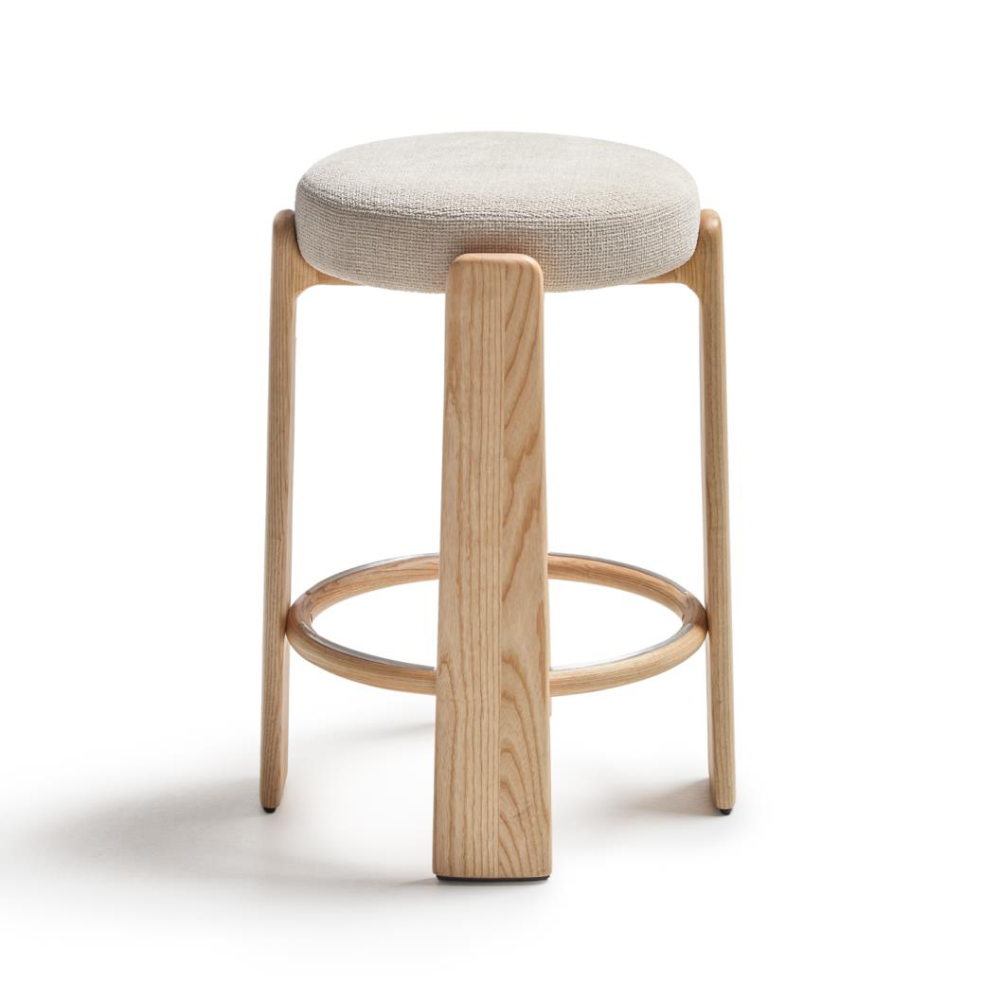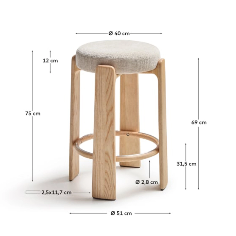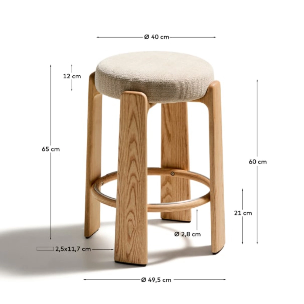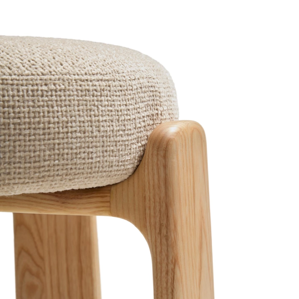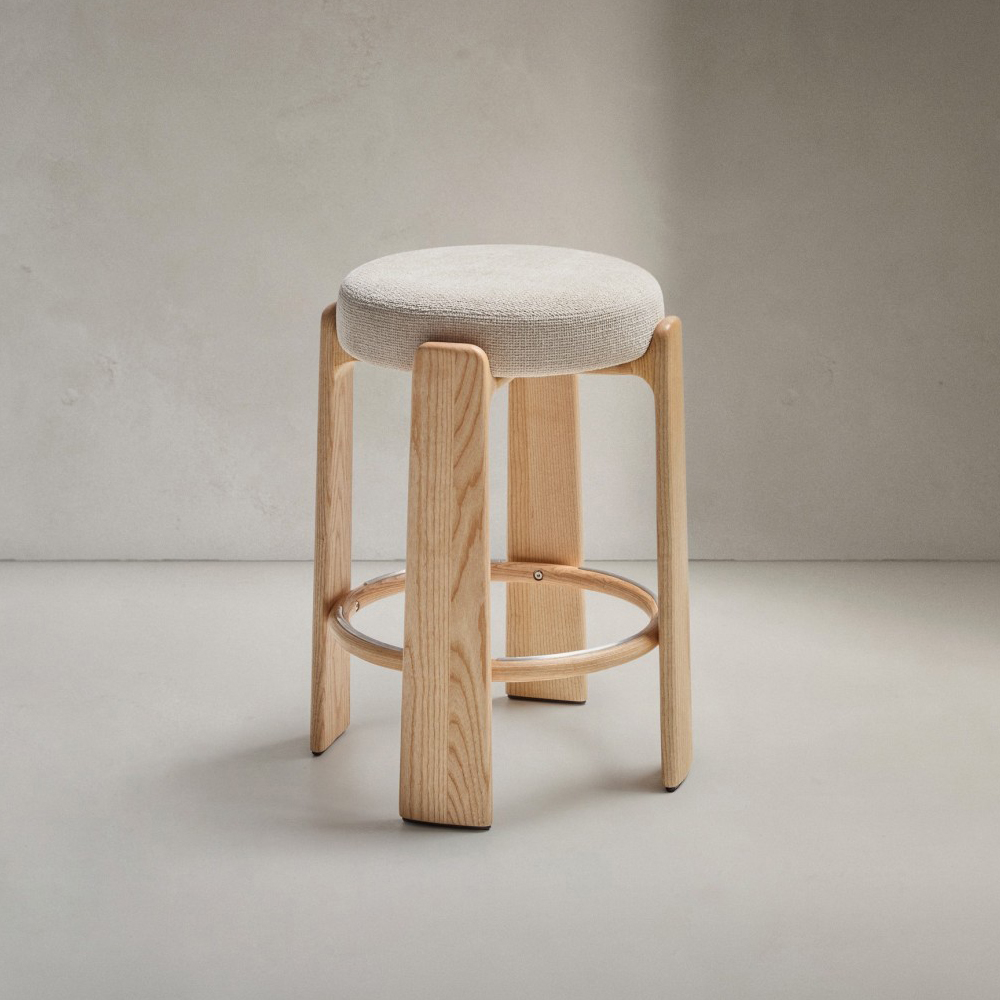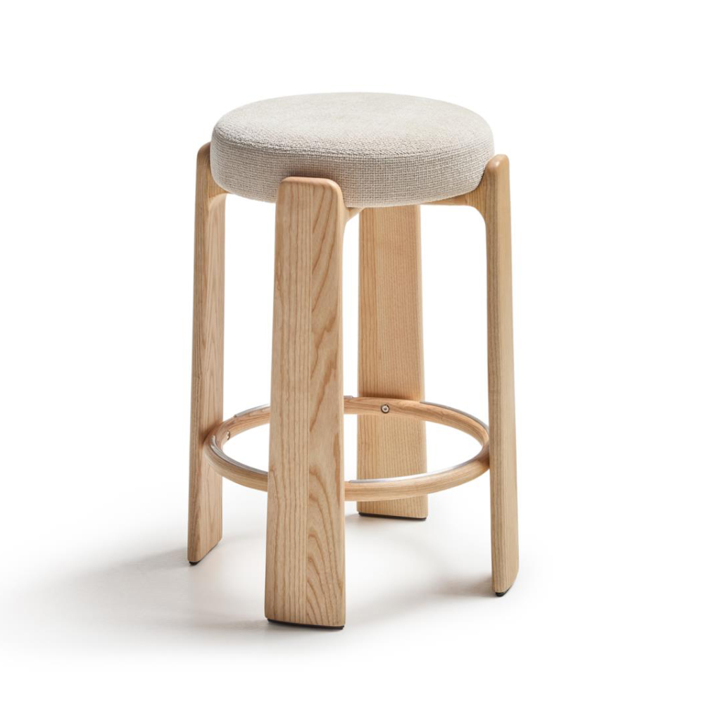 Banco alto madeira de freixo estofado bege Grani