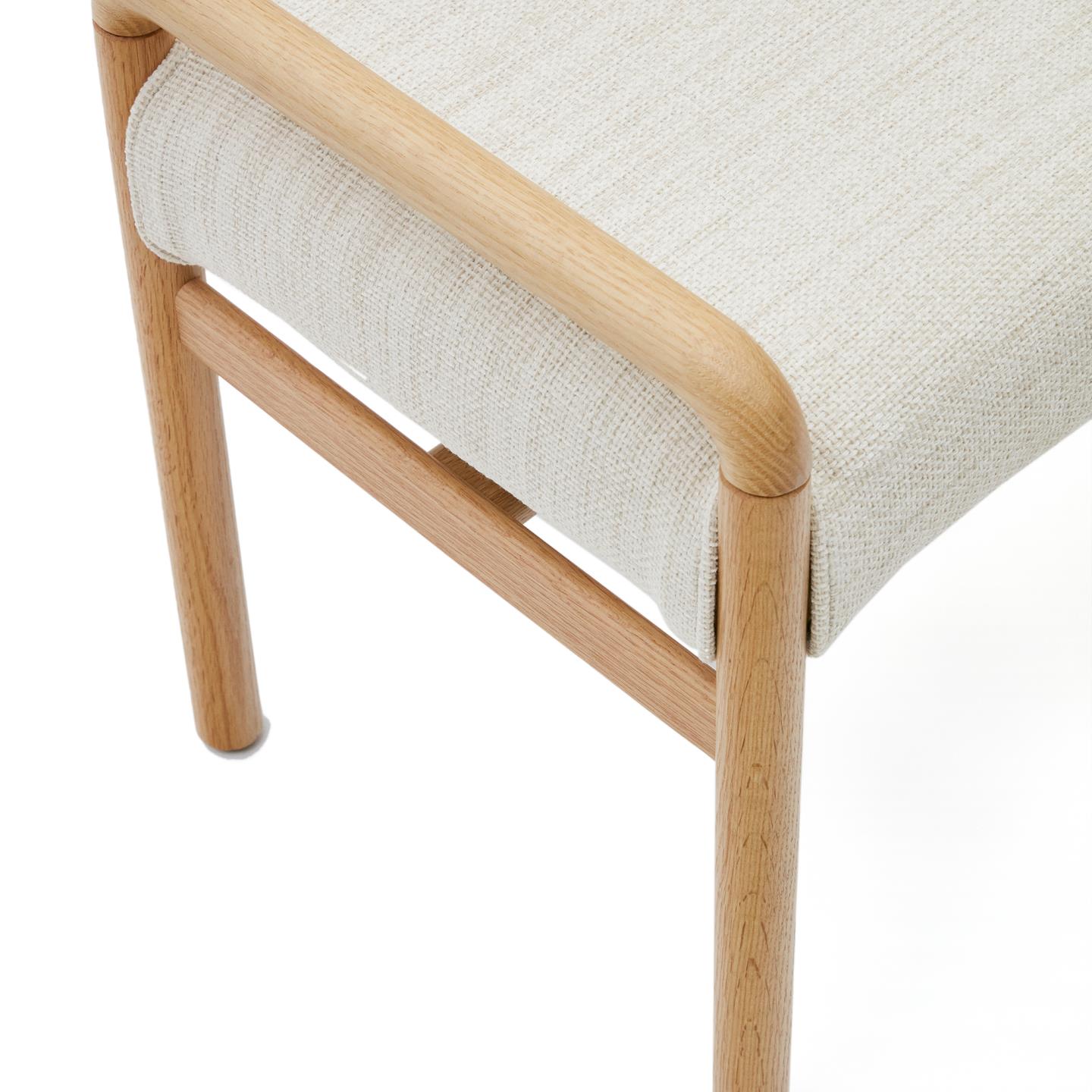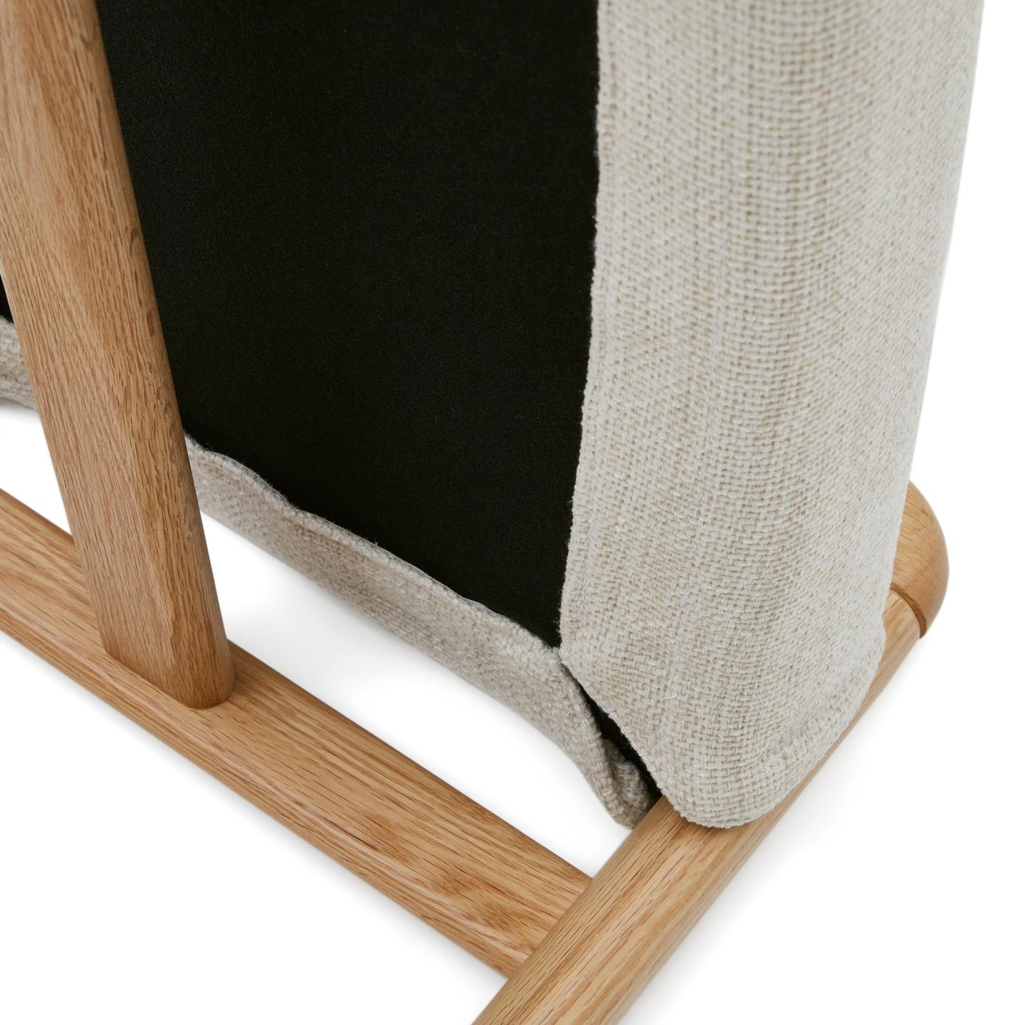 - Estrutura em madeira maciça de carvalho com acabamento natural.