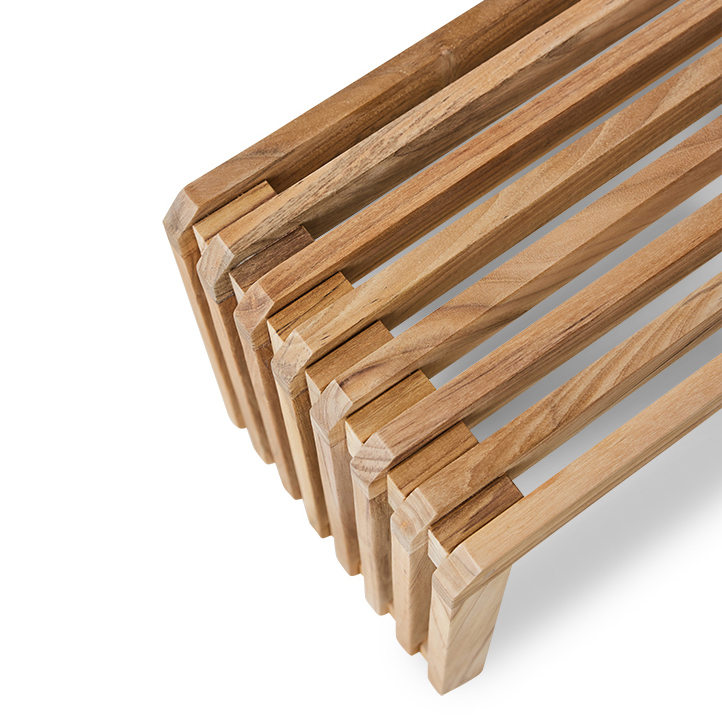 - Descrição: Banco de ripas de teca