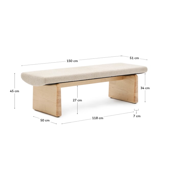 Banco Tupaz, estofado chenille, madeira de freixo