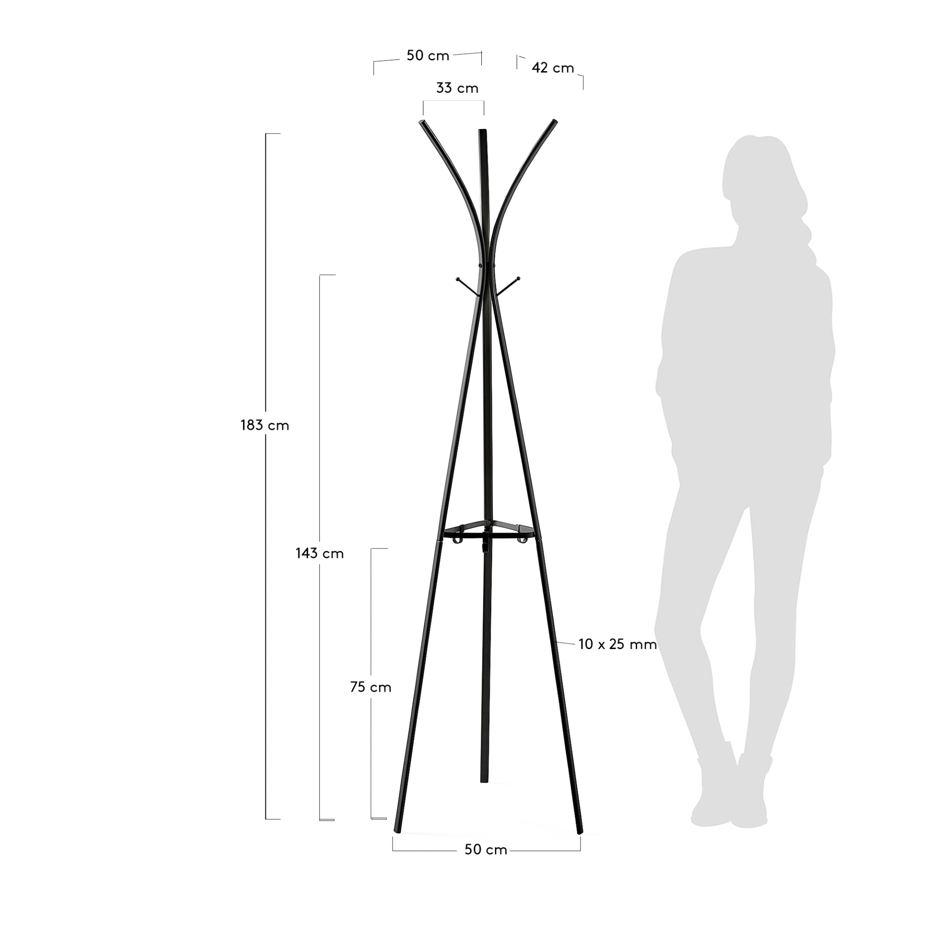 Cabide de pé Steen, metal, 183cm