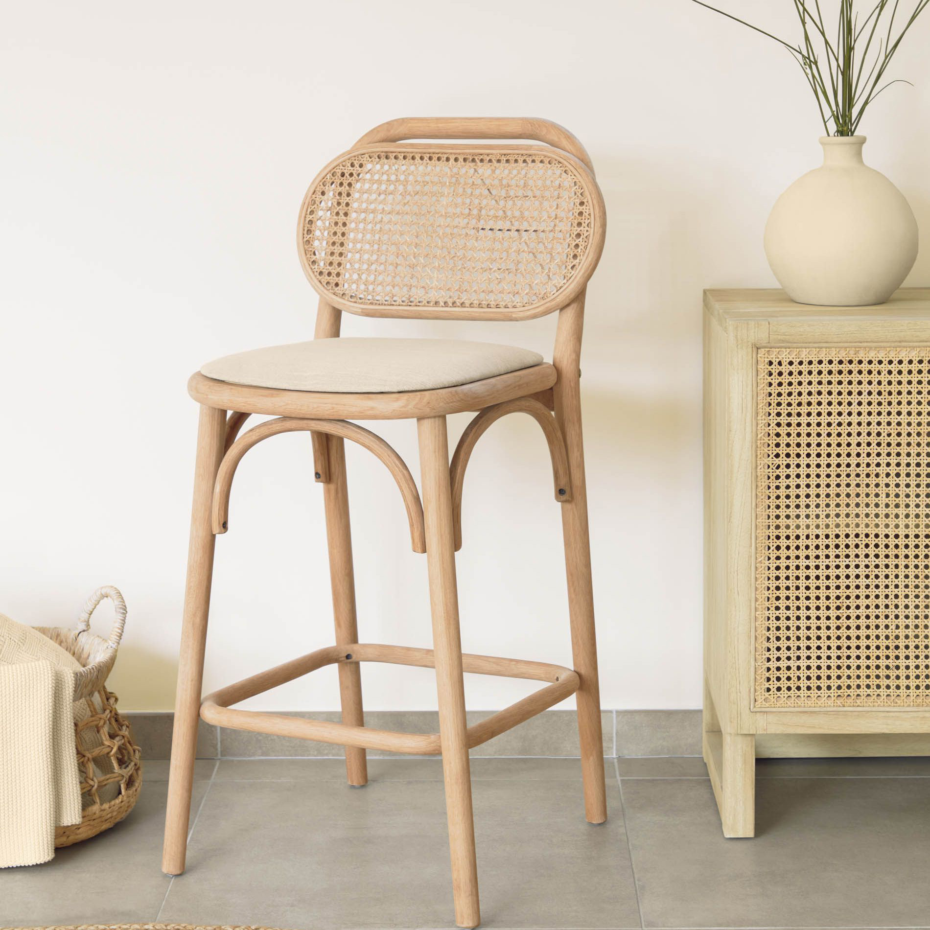 Cadeira alta Doria, assento estofado, carvalho, 65cm