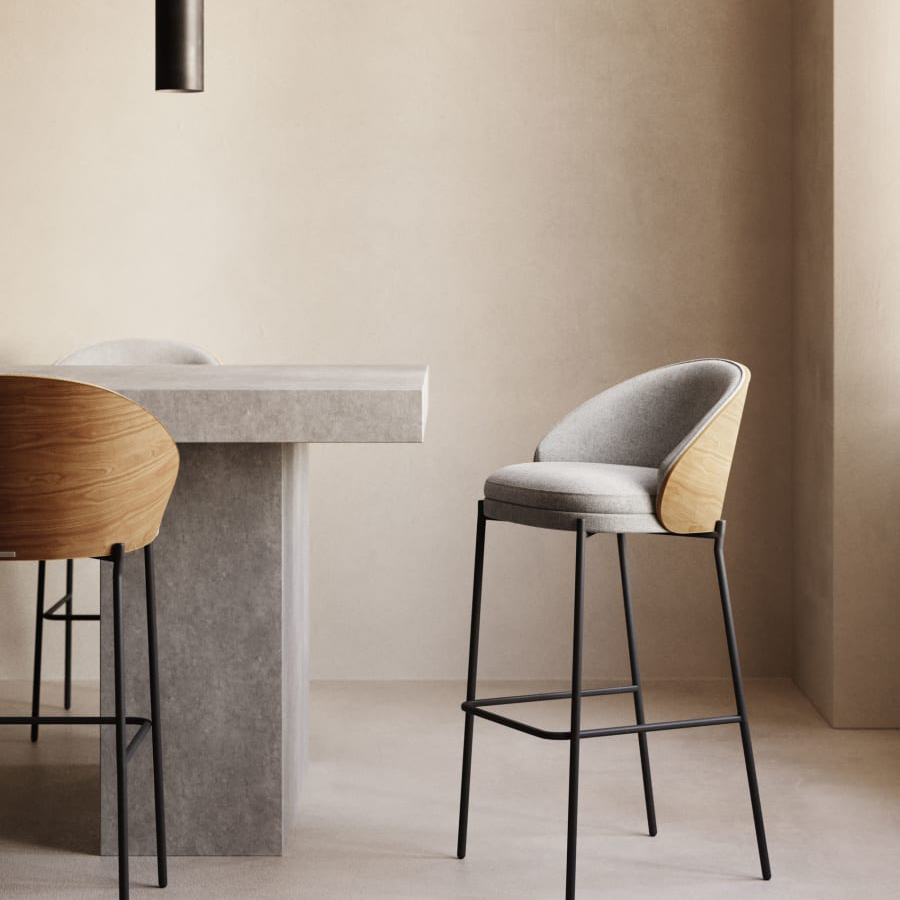 Cadeira alta Emmy, estofada, madeira, cinza, 65cm