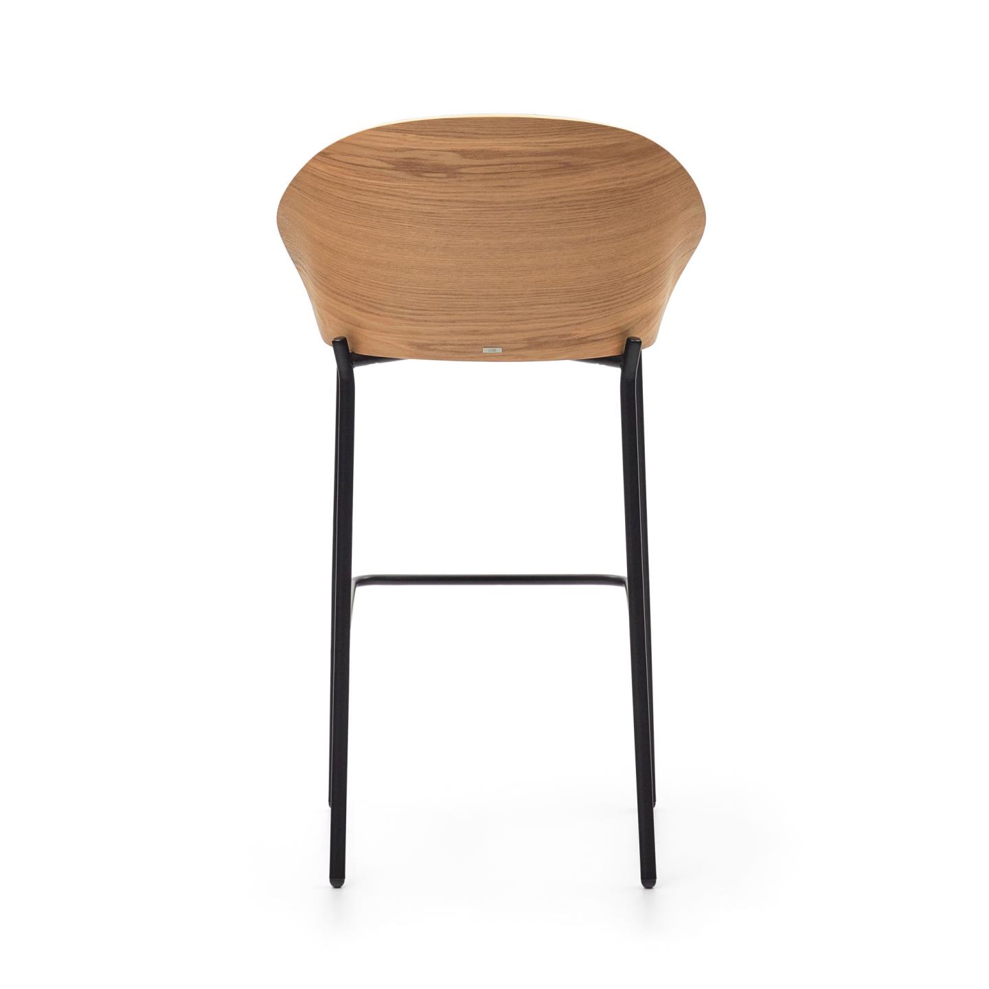 - Cadeira de balcão com encosto em madeira de freixo e acabamento natural.