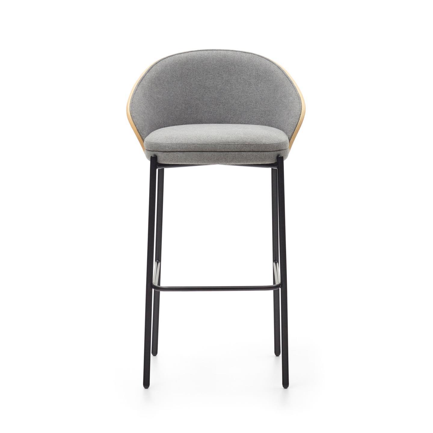 Cadeira alta Emmy, estofada, madeira, cinza, 77cm