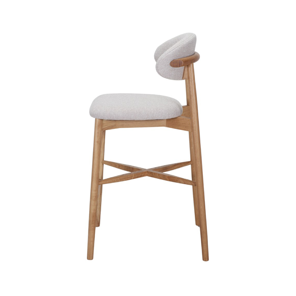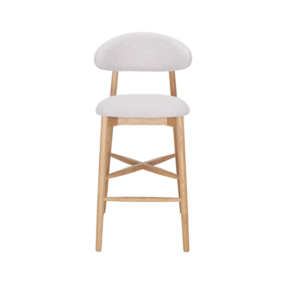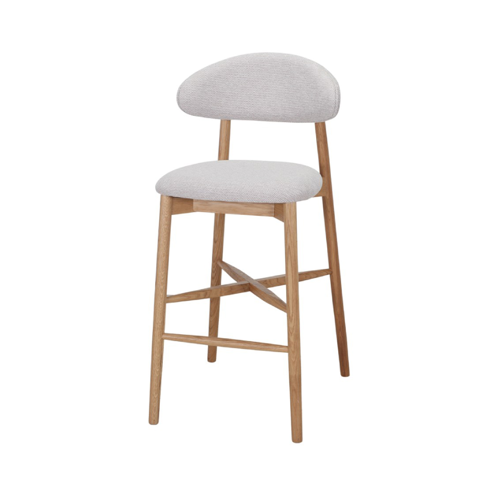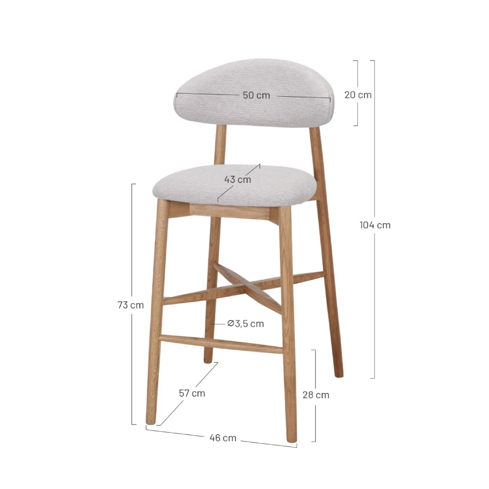 Cadeira alta madeira carvalho estofada bege Noval 73cm