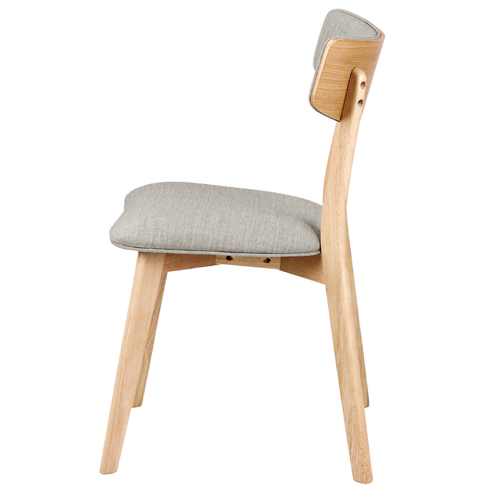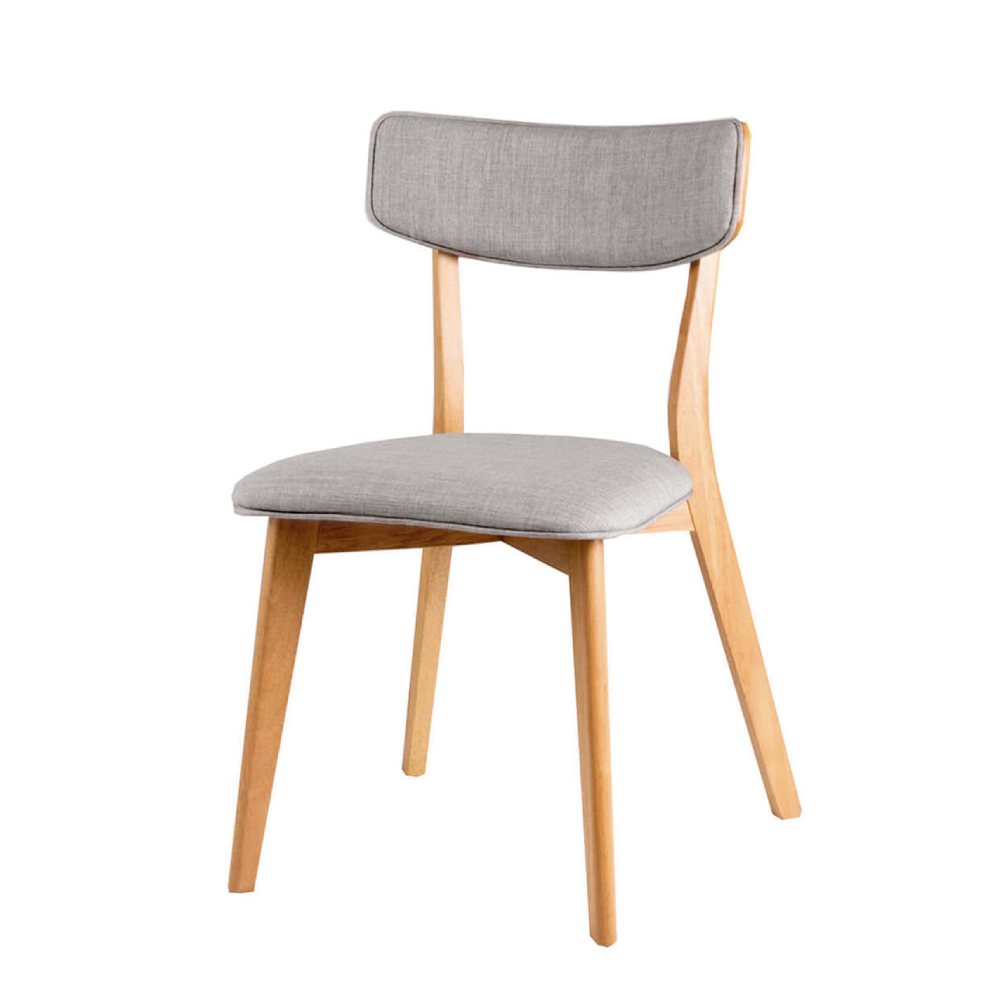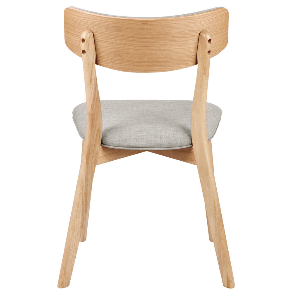 - O encosto ligeiramente curvado garante conforto ergonómico, enquanto o assento estofado em tecido cinza acrescenta um toque moderno e versátil.