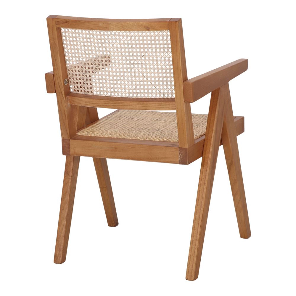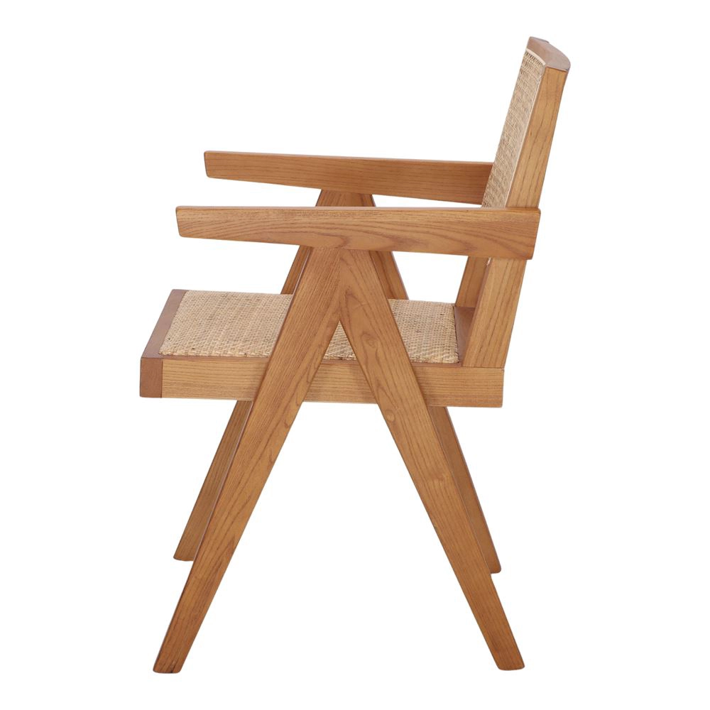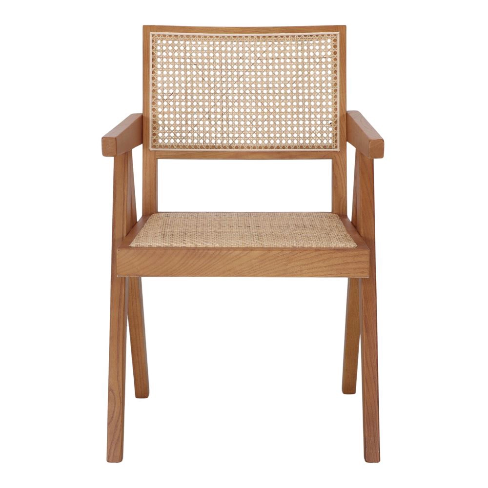 - Produzida em madeira maciça de olmo com acabamento natural, encosto e assento em fibras de rattan entrançadas que oferece elegância e durabilidade.