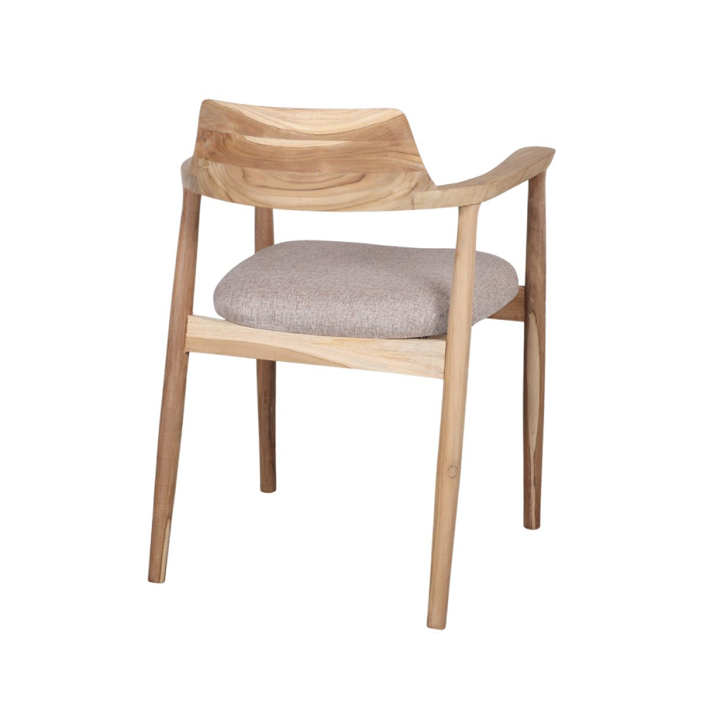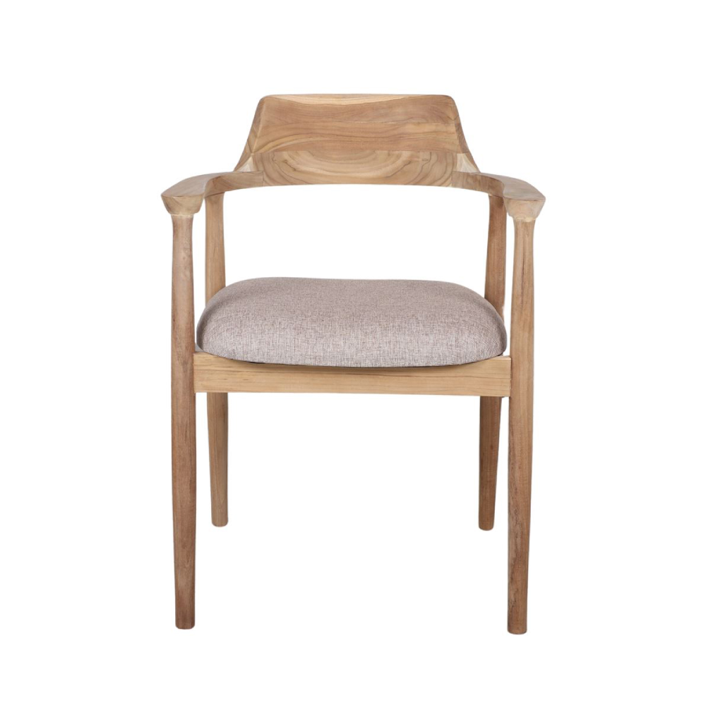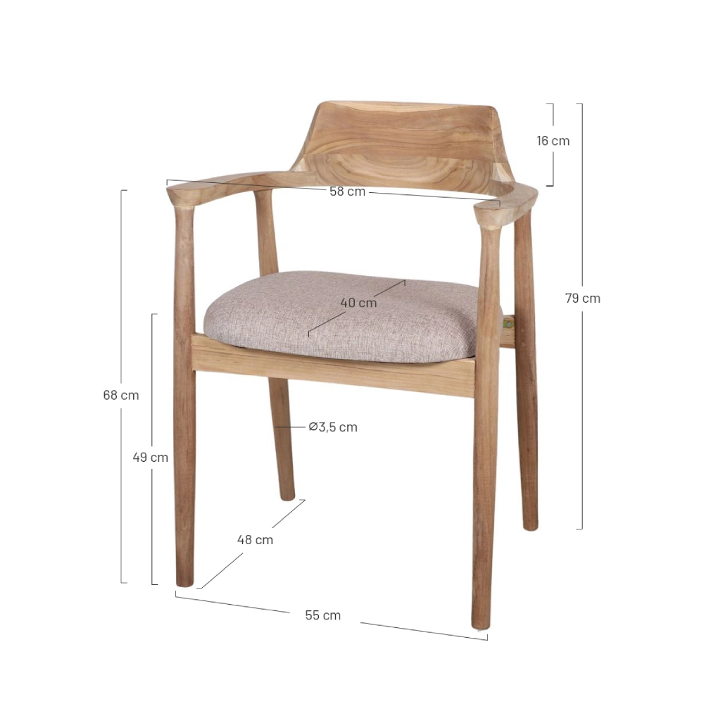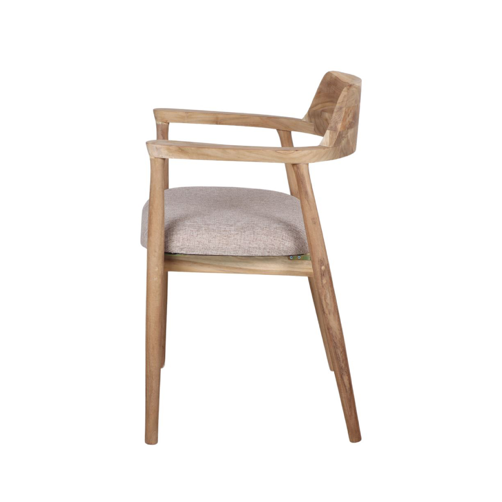 Cadeira com braços madeira teca estofada bege Derby