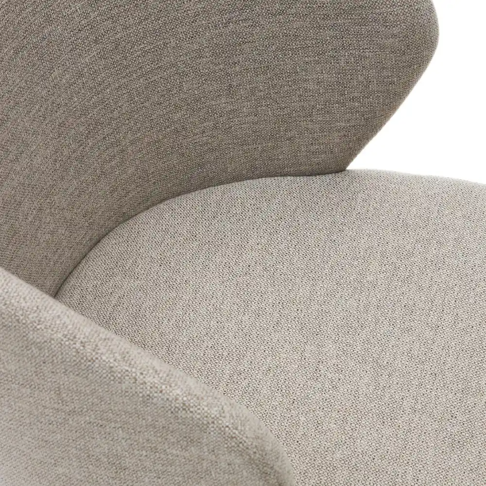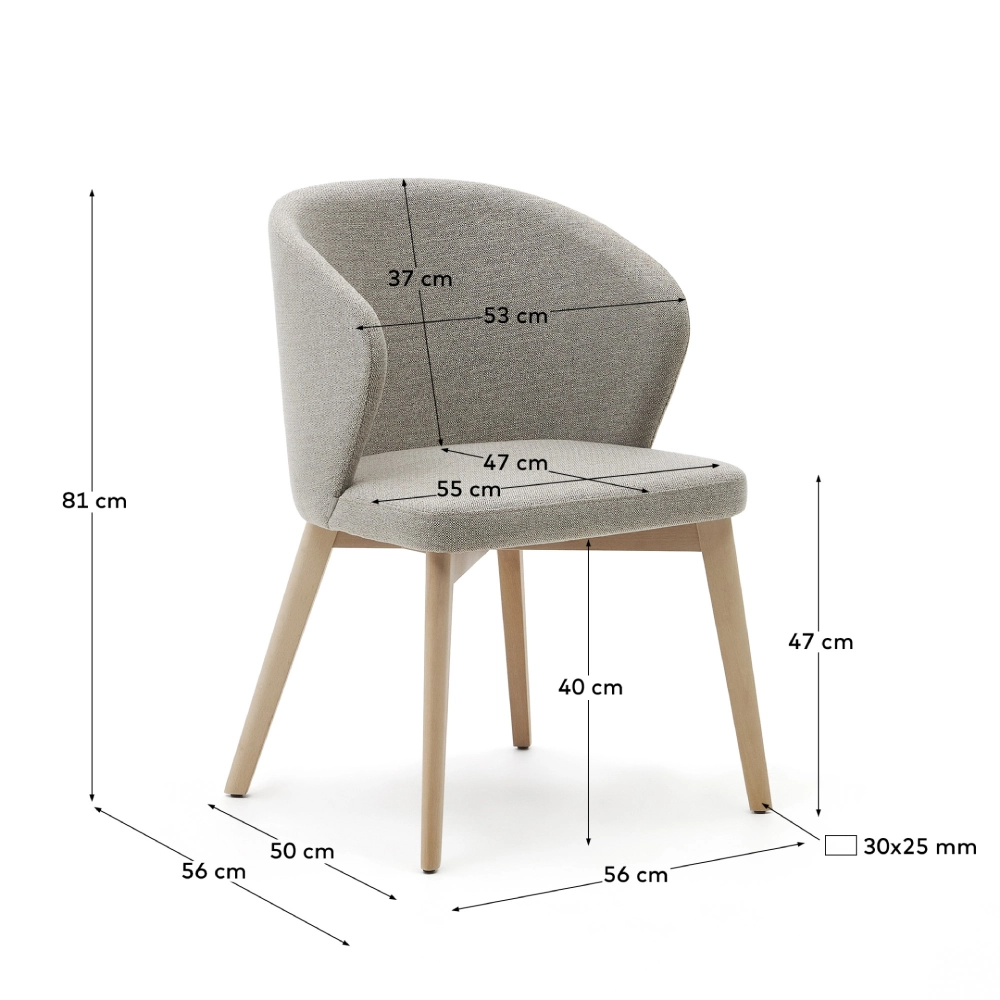 - A estrutura em madeira maciça de faia com acabamento natural garante resistência e durabilidade, enquanto o assento e encosto estofados em tecido chenille bege oferecem suavidade e aconchego.