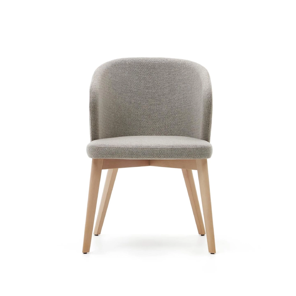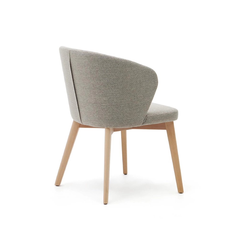 Cadeira estofada bege com braços em madeira faia Darin