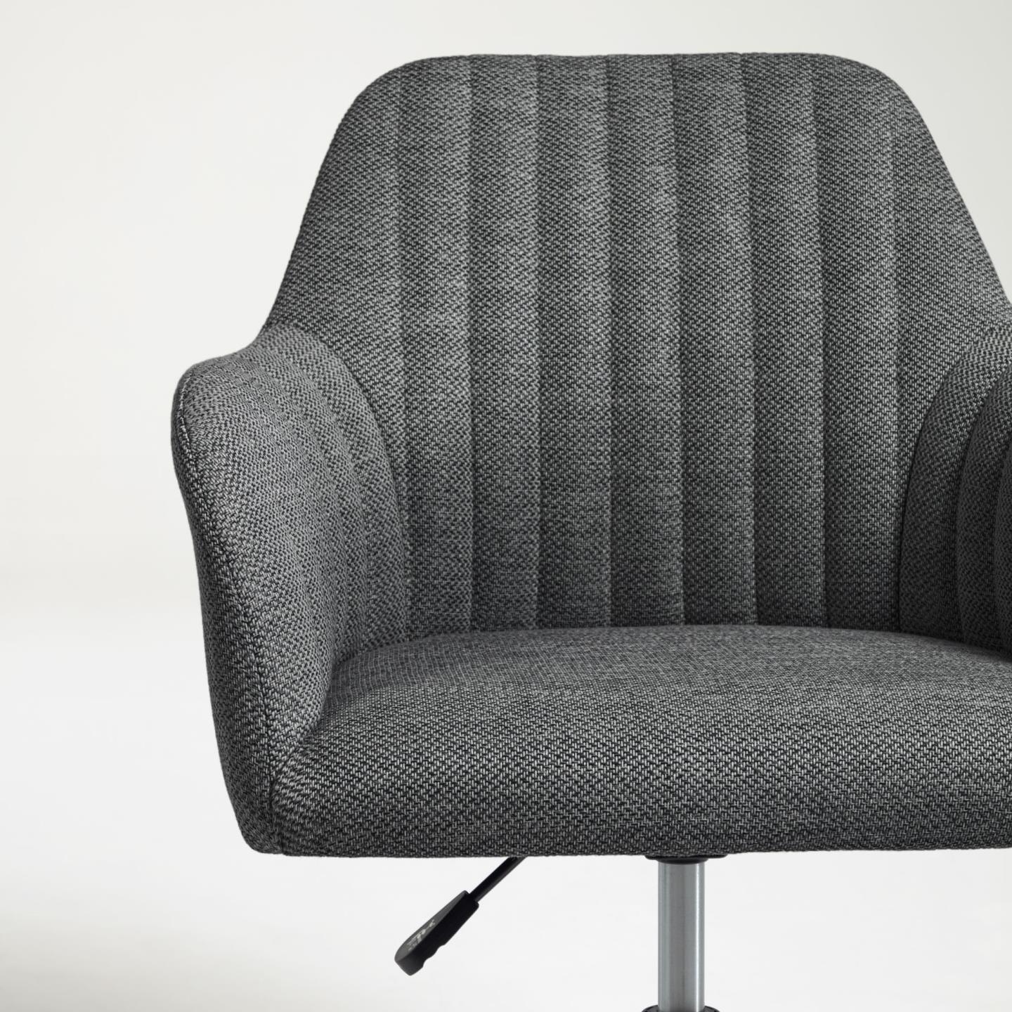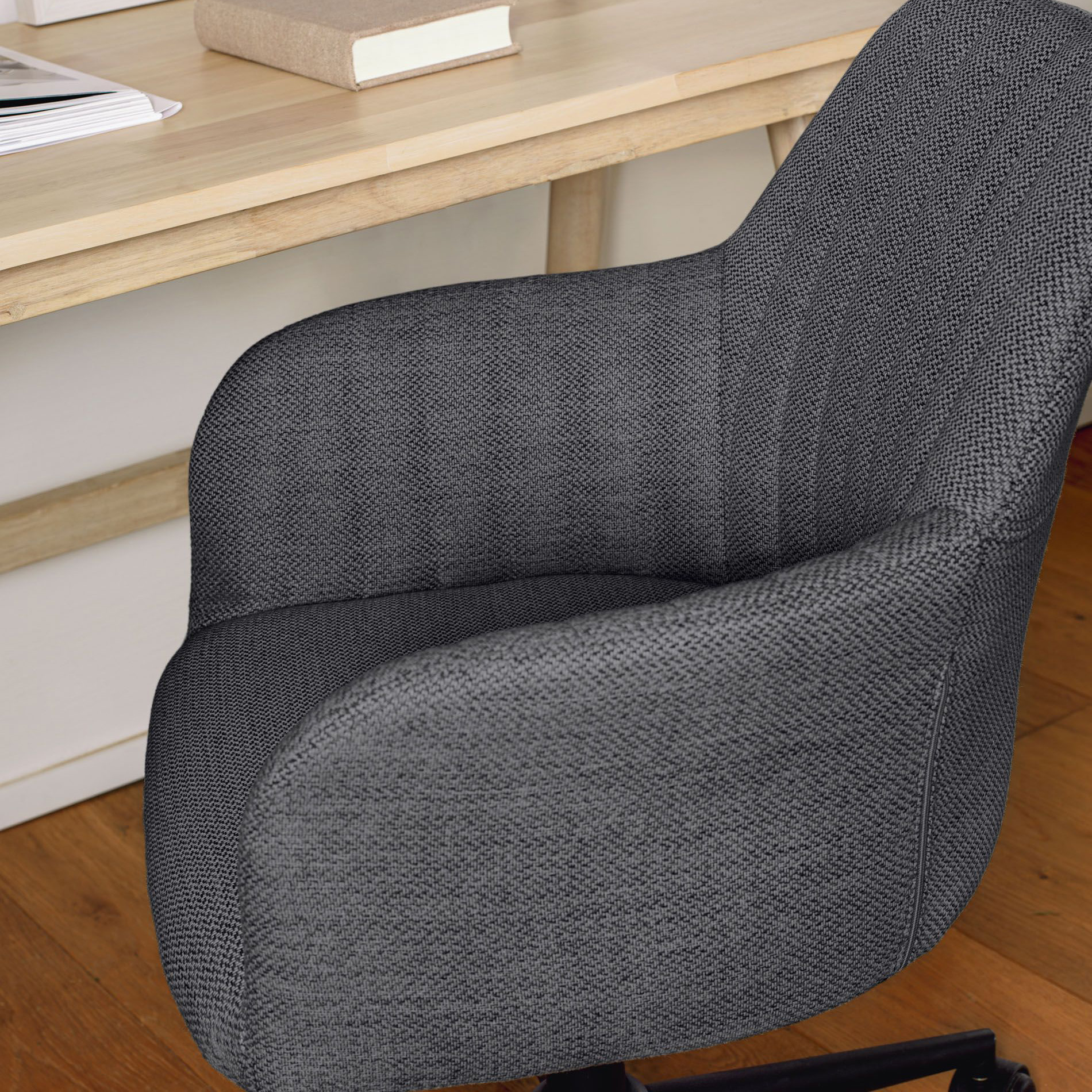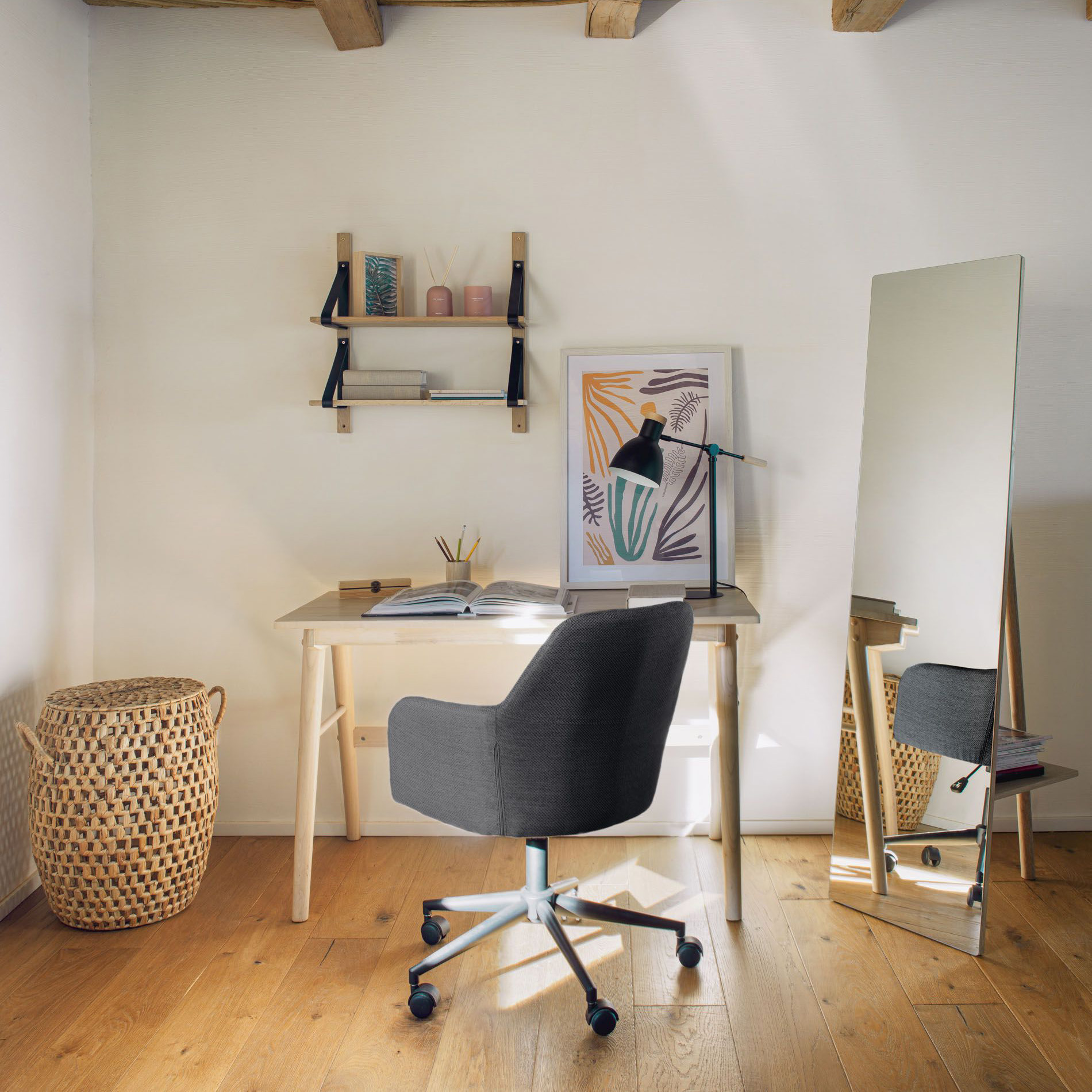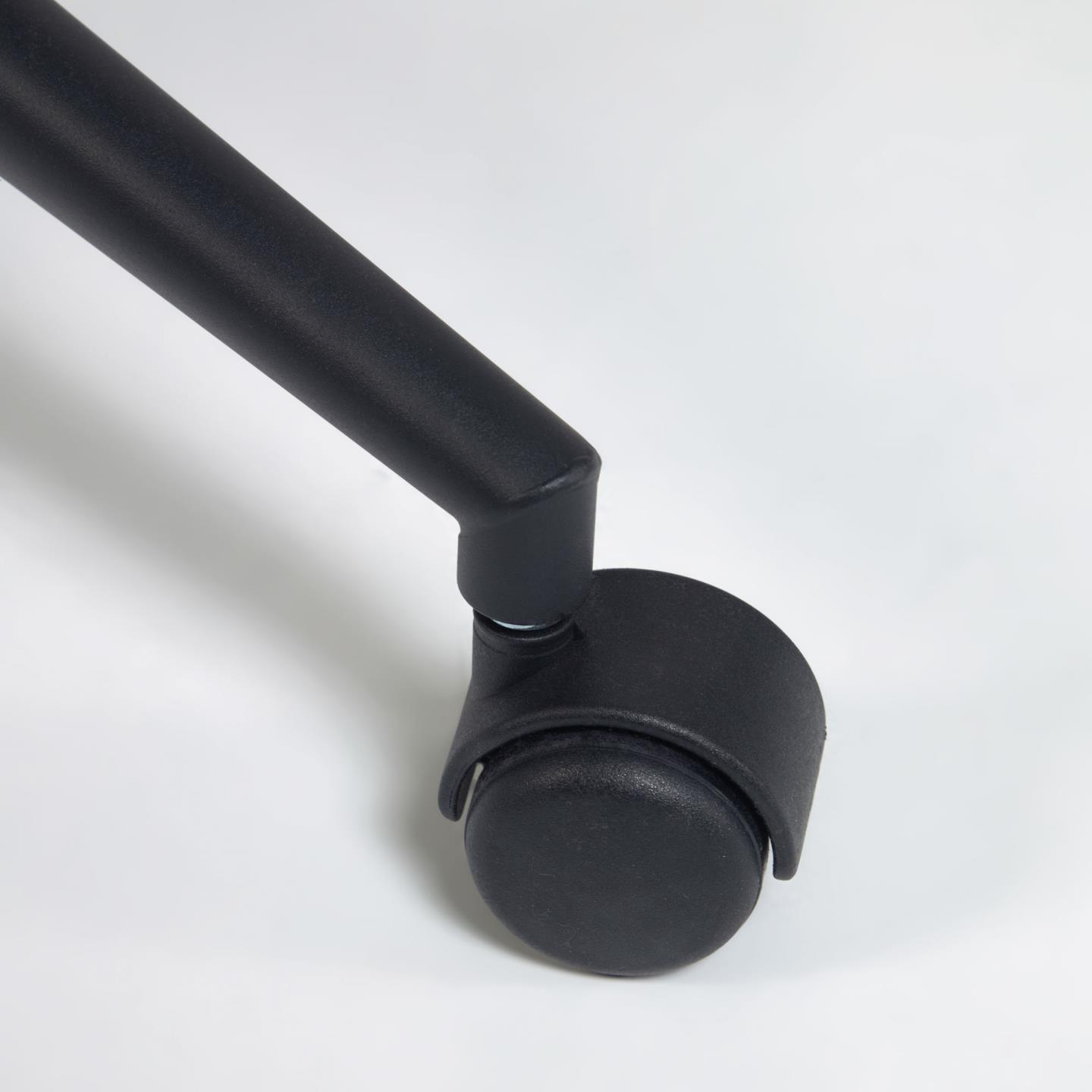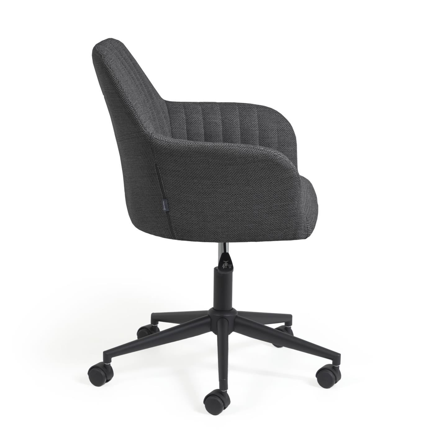 - A cadeira de escritório Medi, com assento giratório, rodas e altura regulável, tem um design perfeito para usar em casa.