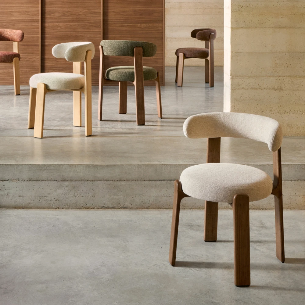 - As três pernas robustas criam um visual escultural e contemporâneo, tornando esta cadeira ideal para salas de jantar modernas ou espaços de inspiração nórdica onde se privilegia a harmonia entre forma e função.