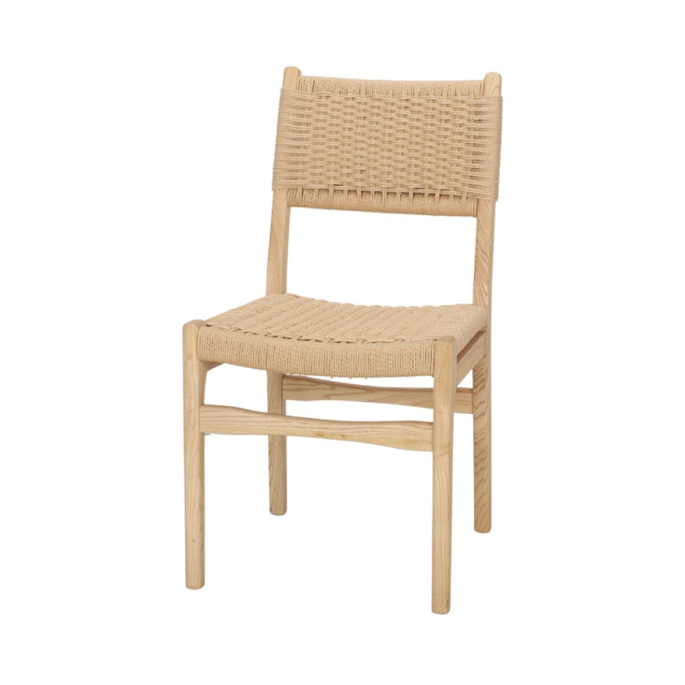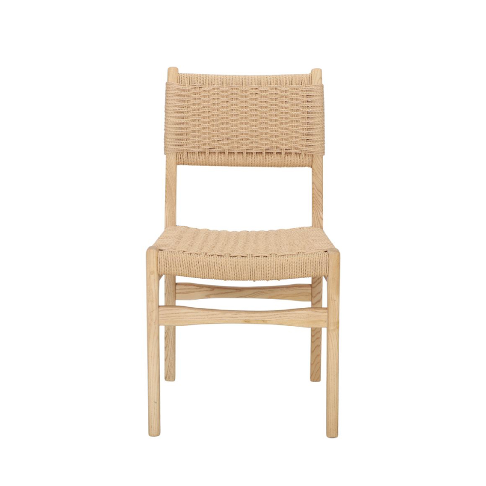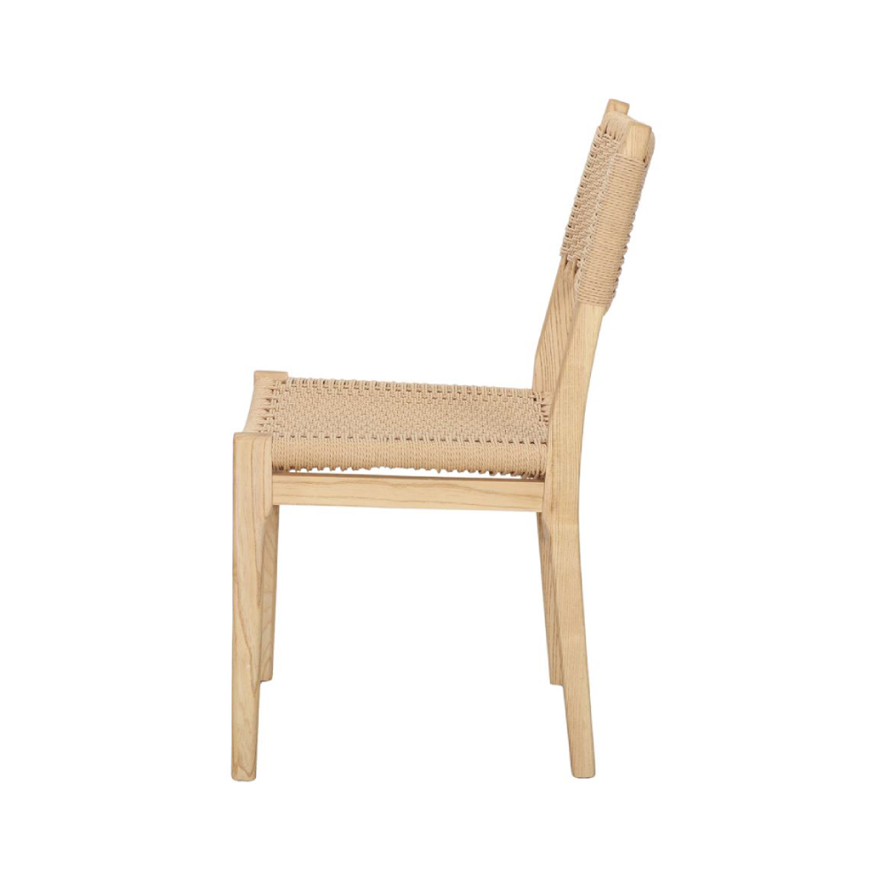 - Produzida em madeira maciça de olmo com assento e encosto em corda trançada, oferece resistência, conforto e um visual leve.