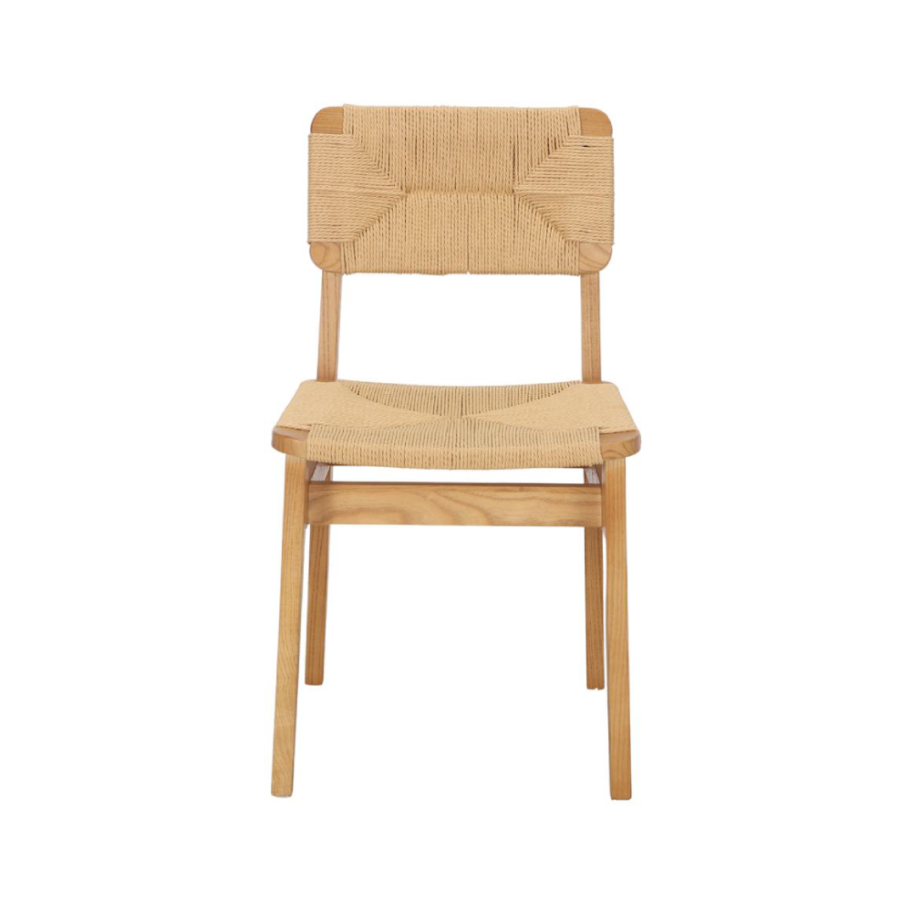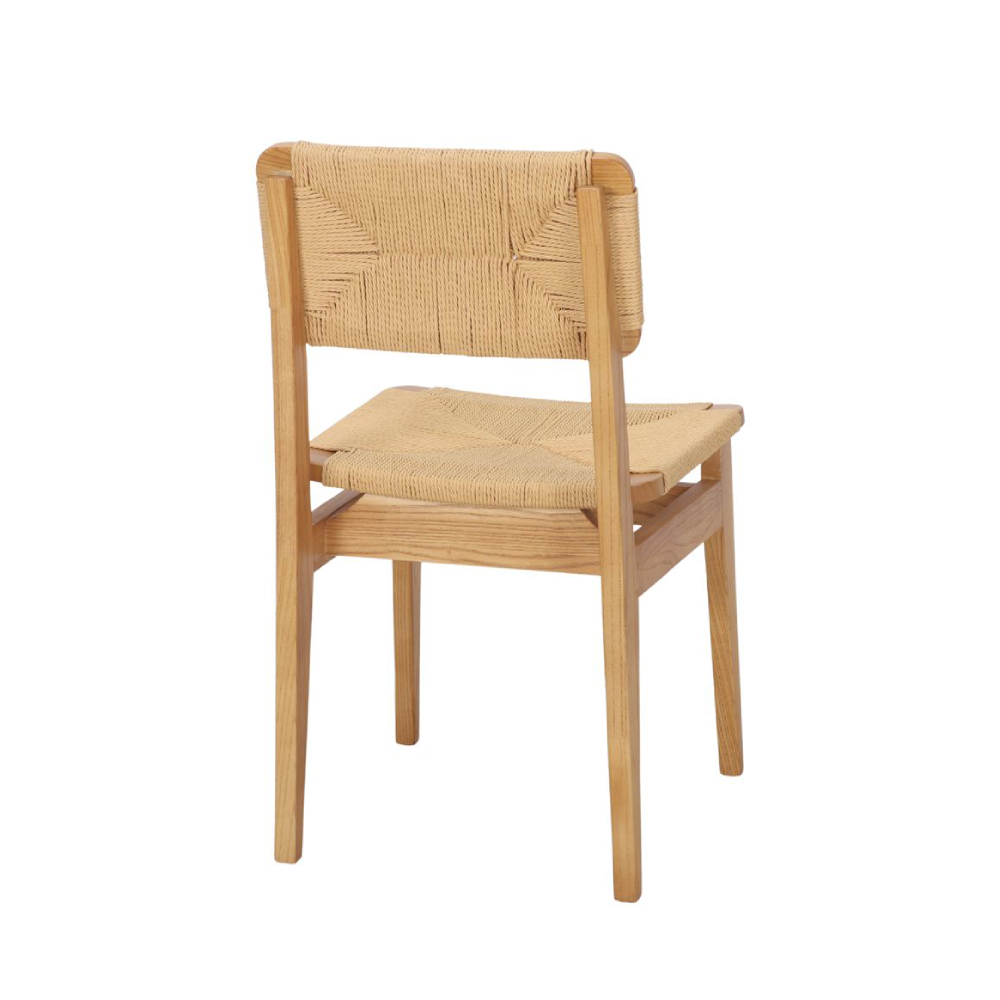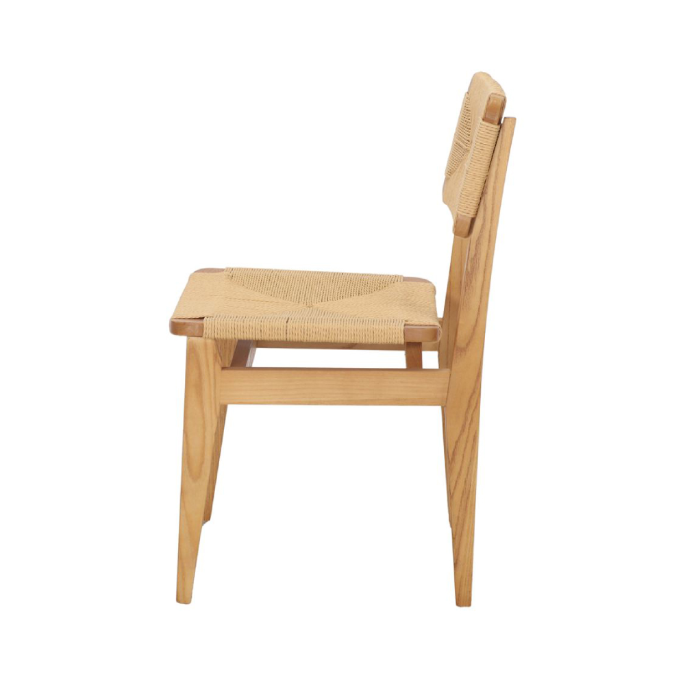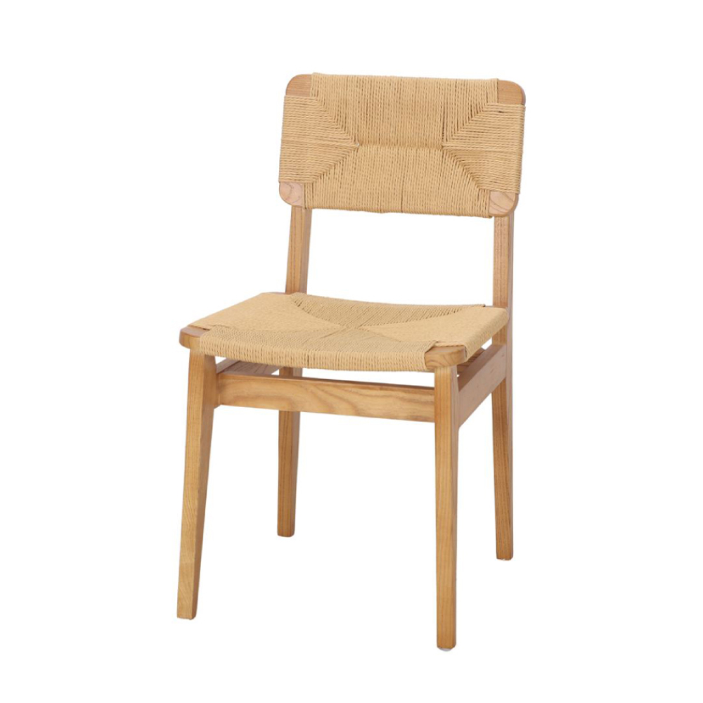 - Produzida em madeira maciça de olmo com assento e encosto em corda trançada, oferece conforto, leveza e um aspeto acolhedor.