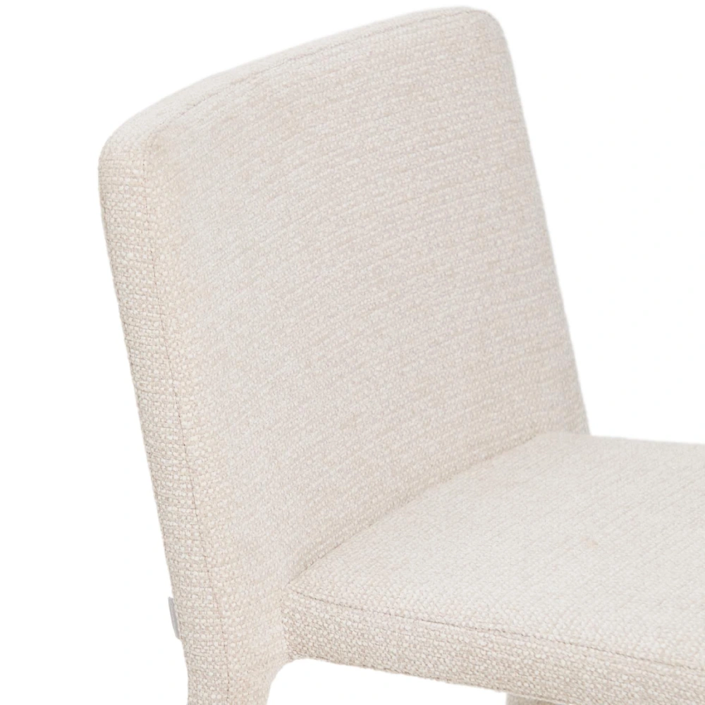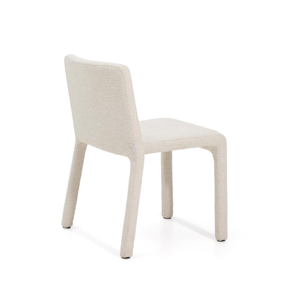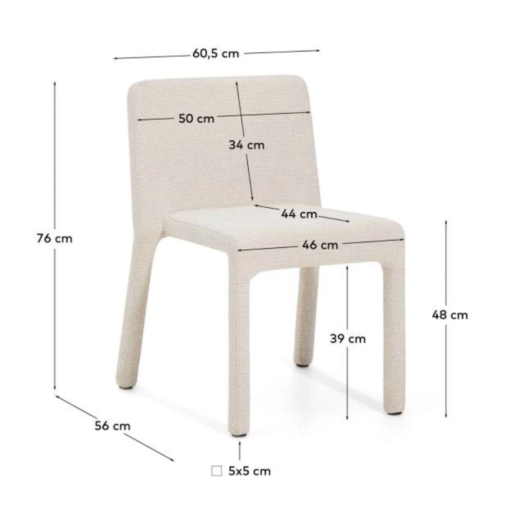 - A estrutura em madeira confere estabilidade e calor natural, enquanto o estofado em tecido chenille bege oferece suavidade e um toque contemporâneo.
