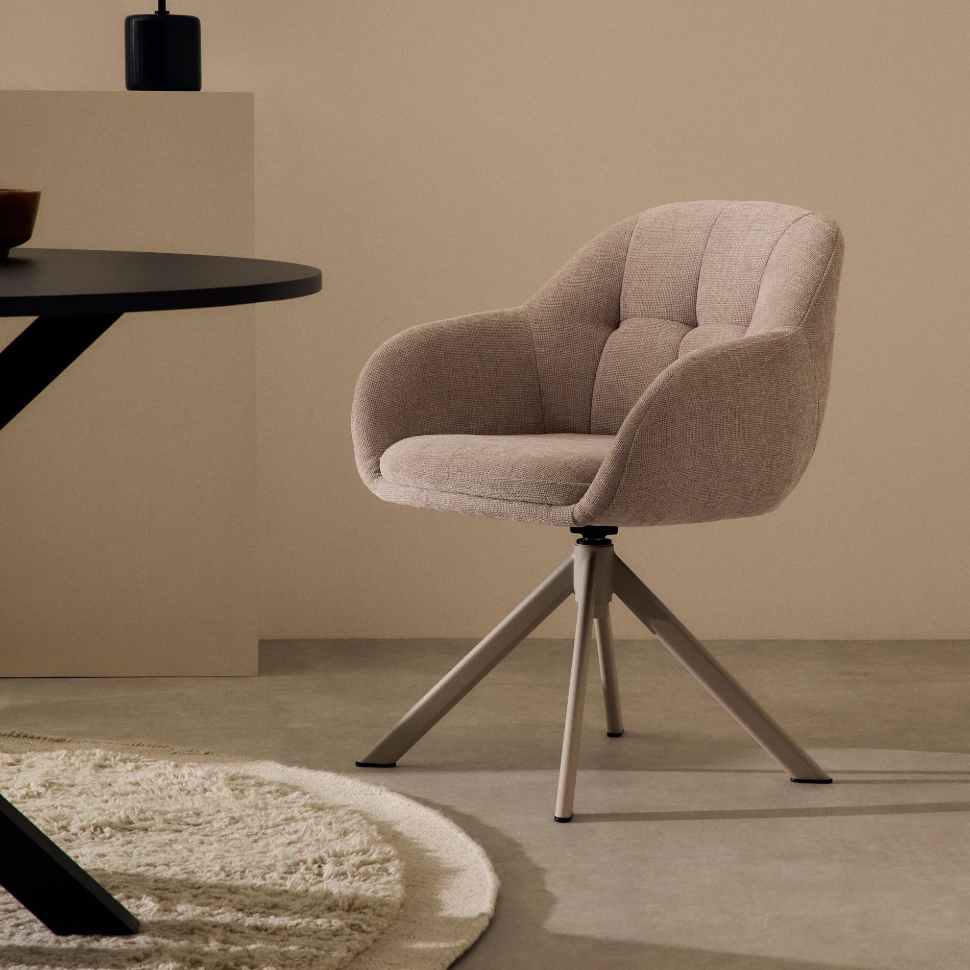 - Cadeira giratória com apoio de braços estofada em chenille com toque suave.