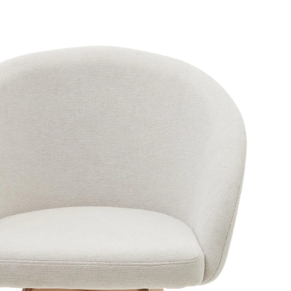 - Estofada em chenille natural, oferece um assento acolhedor que se adapta tanto a salas de jantar como a escritórios.