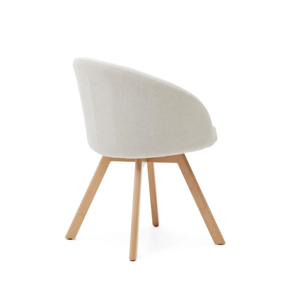 - A base giratória permite liberdade de movimento sem comprometer o estilo, enquanto as pernas em madeira maciça de faia com acabamento natural reforçam a sua durabilidade e elegância.