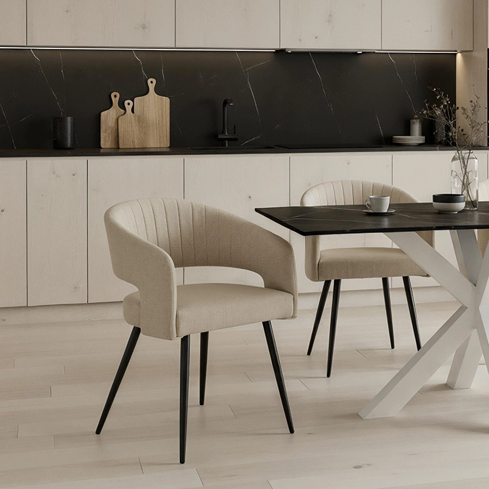 - A cadeira de jantar Kora combina conforto e sofisticação em estilo nórdico.