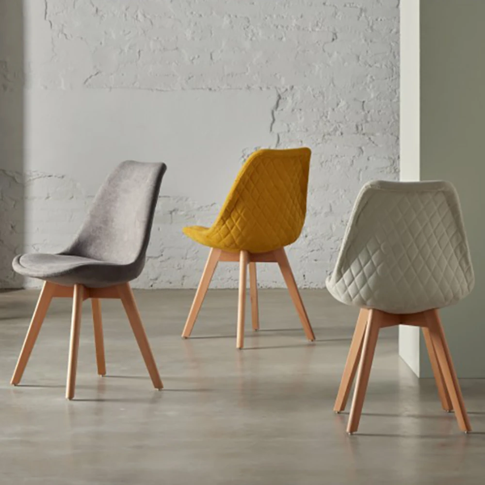 - As pernas em madeira clara conferem estabilidade e resistência, mantendo a leveza visual típica do estilo nórdico.