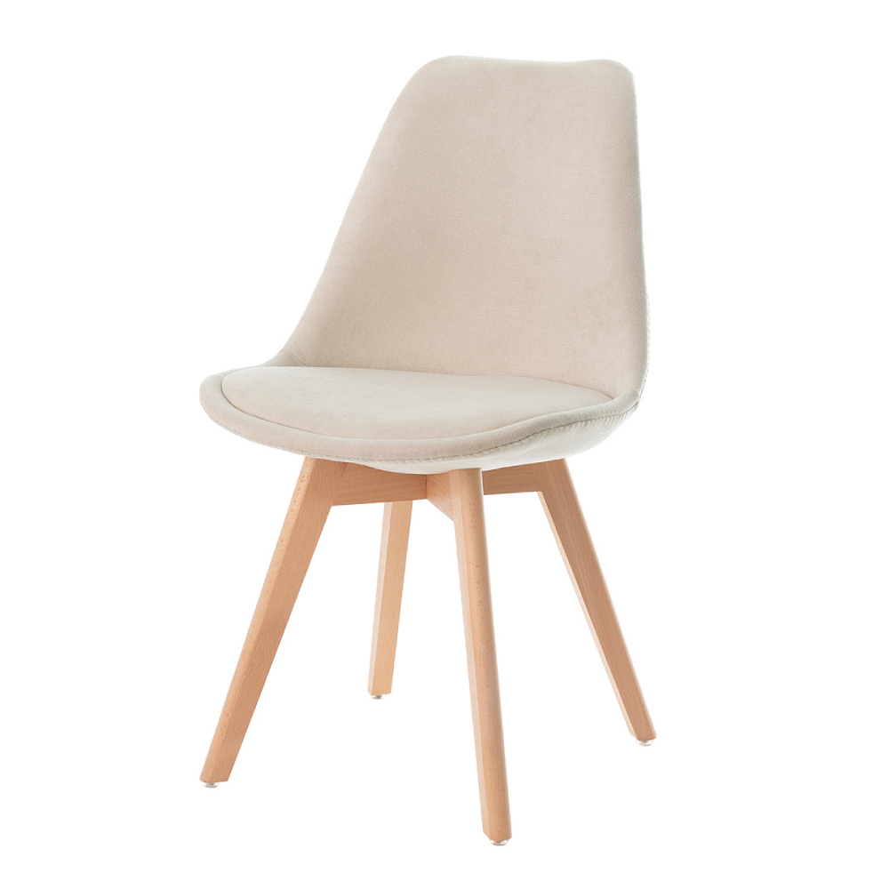 Cadeira estofada bege em madeira Milena