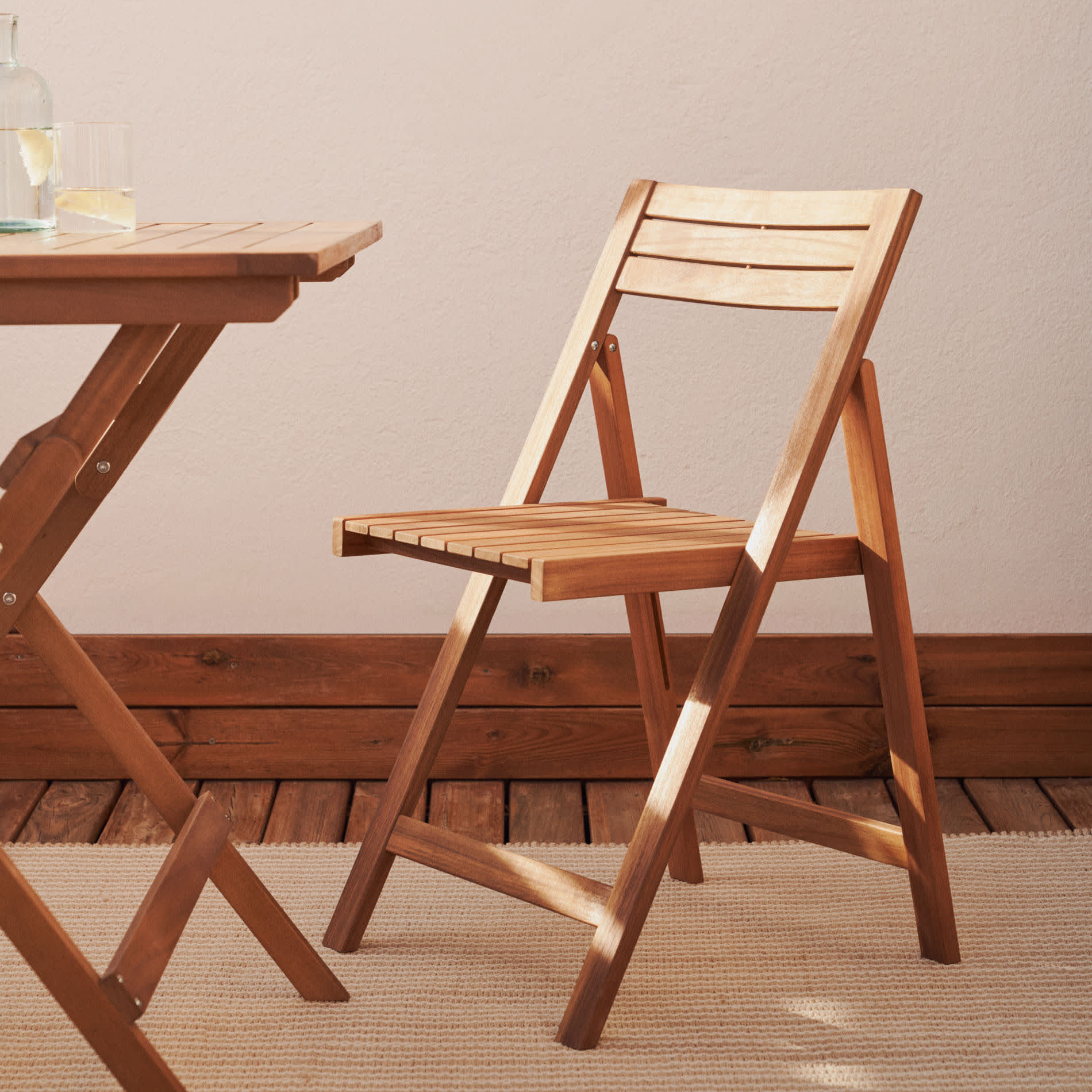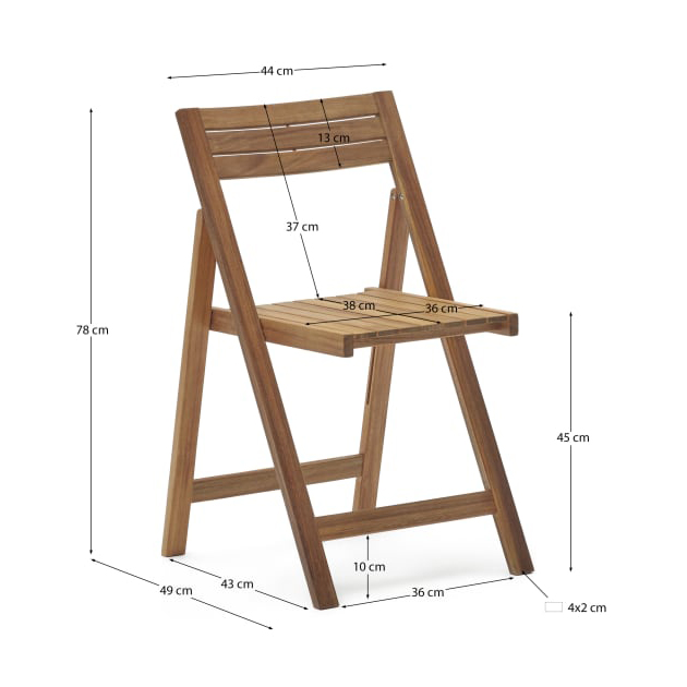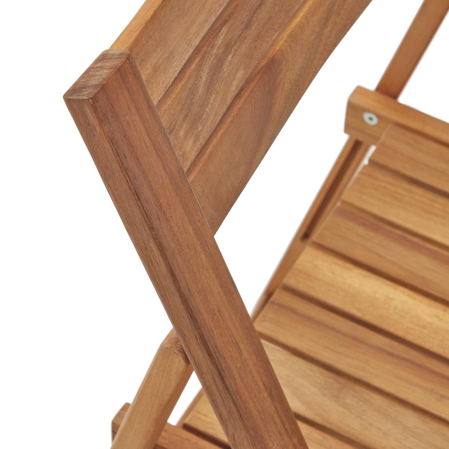 - Esta cadeira em madeira de acácia sustentável é resistente ao sol e dobrável para não ocupar espaço ao guardá-la.