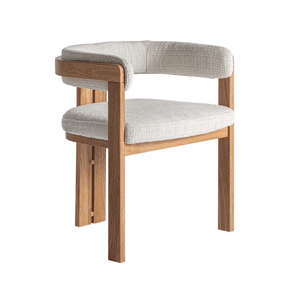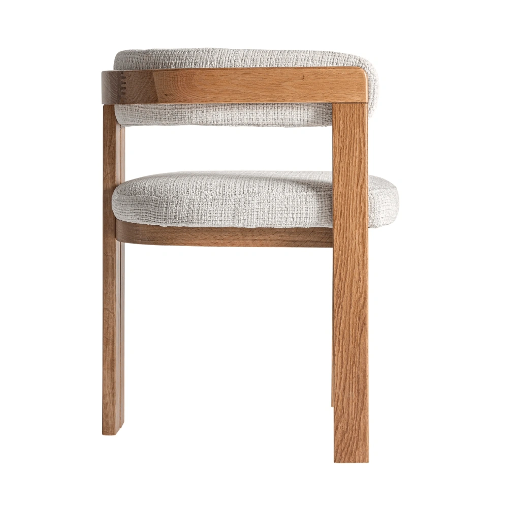 Cadeira estofada bege com braços em carvalho Sedzere