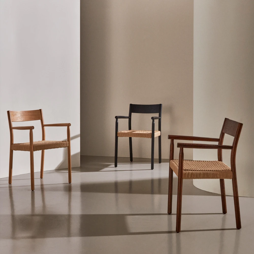 - A cadeira de jantar Yalin combina o conforto dos braços com a elegância do design artesanal.