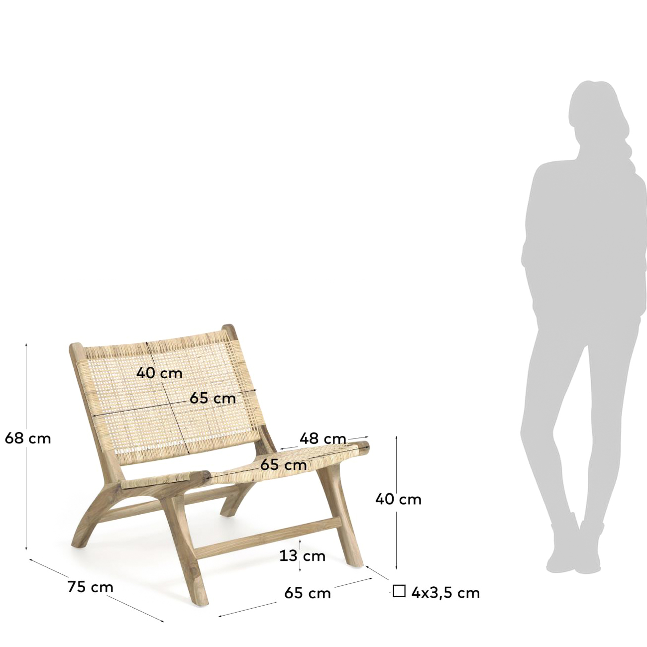 - Detalhes sobre o material do assento: Madeira de teca (Tectona grandis), Rattan