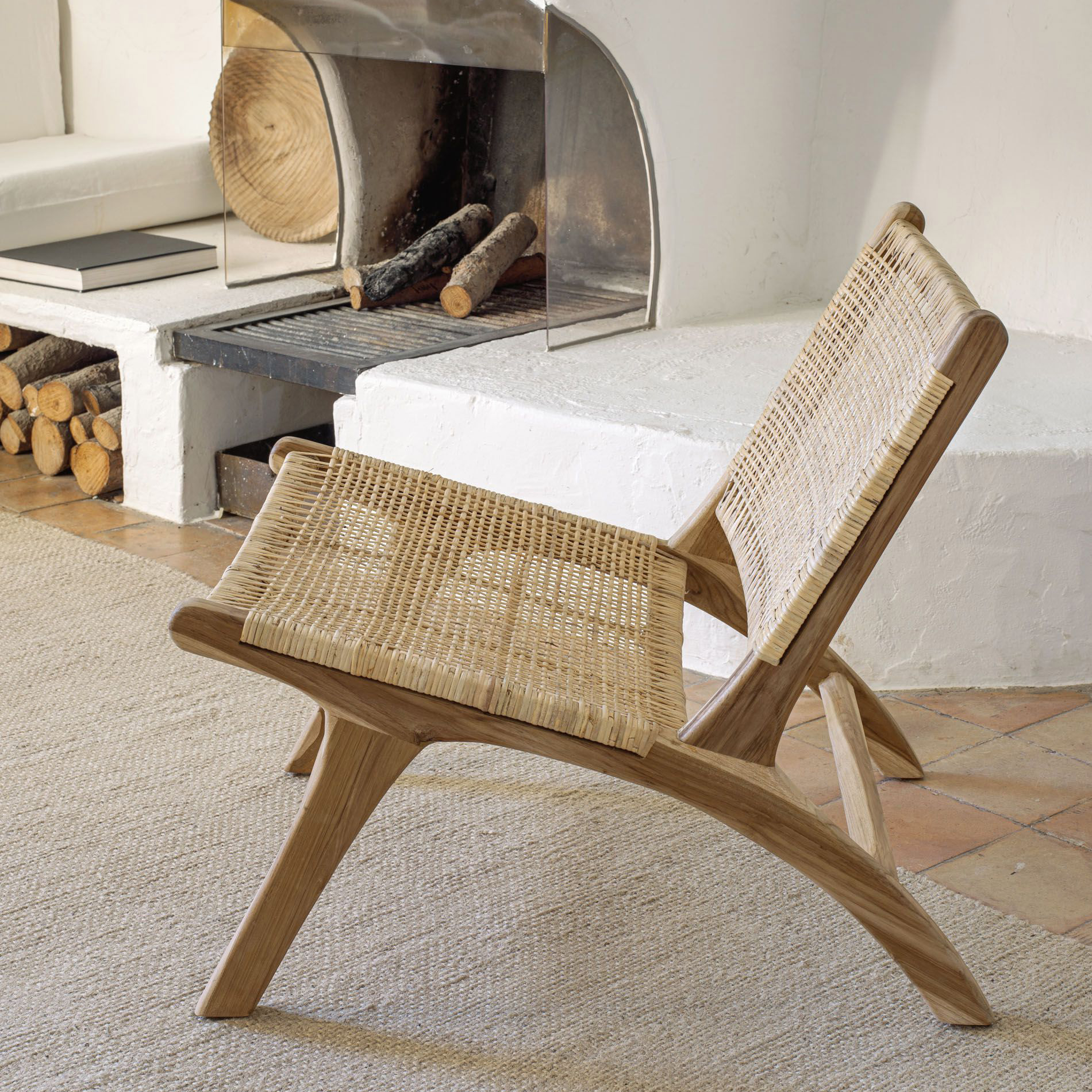 Cadeirão Betan, madeira teca/rattan natural