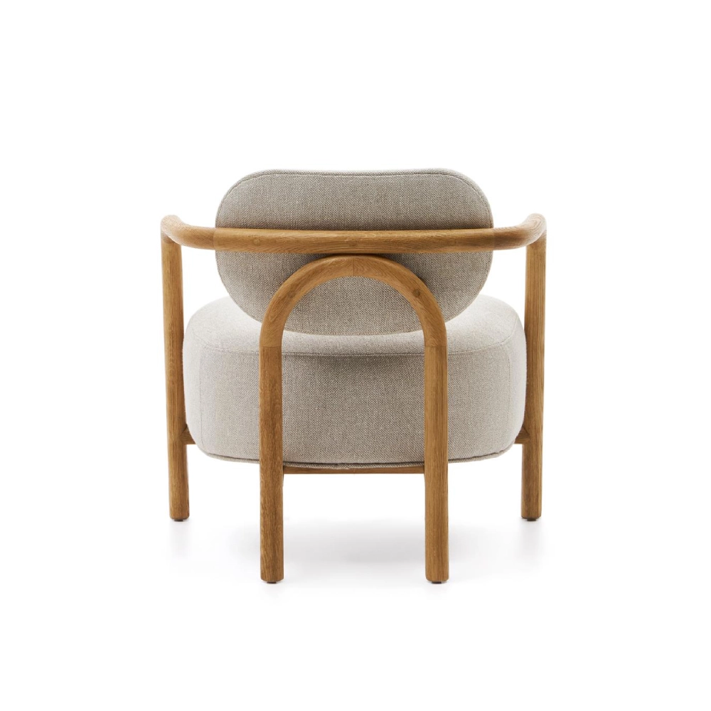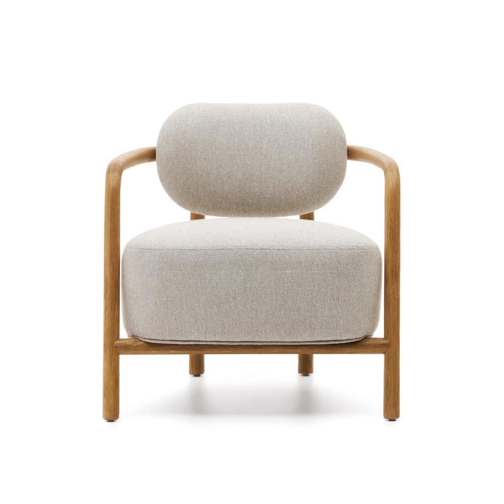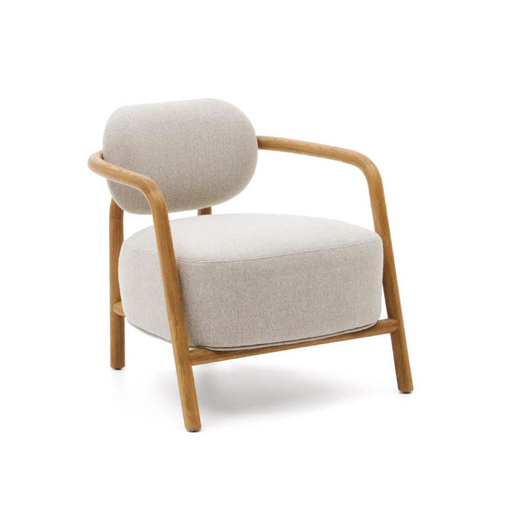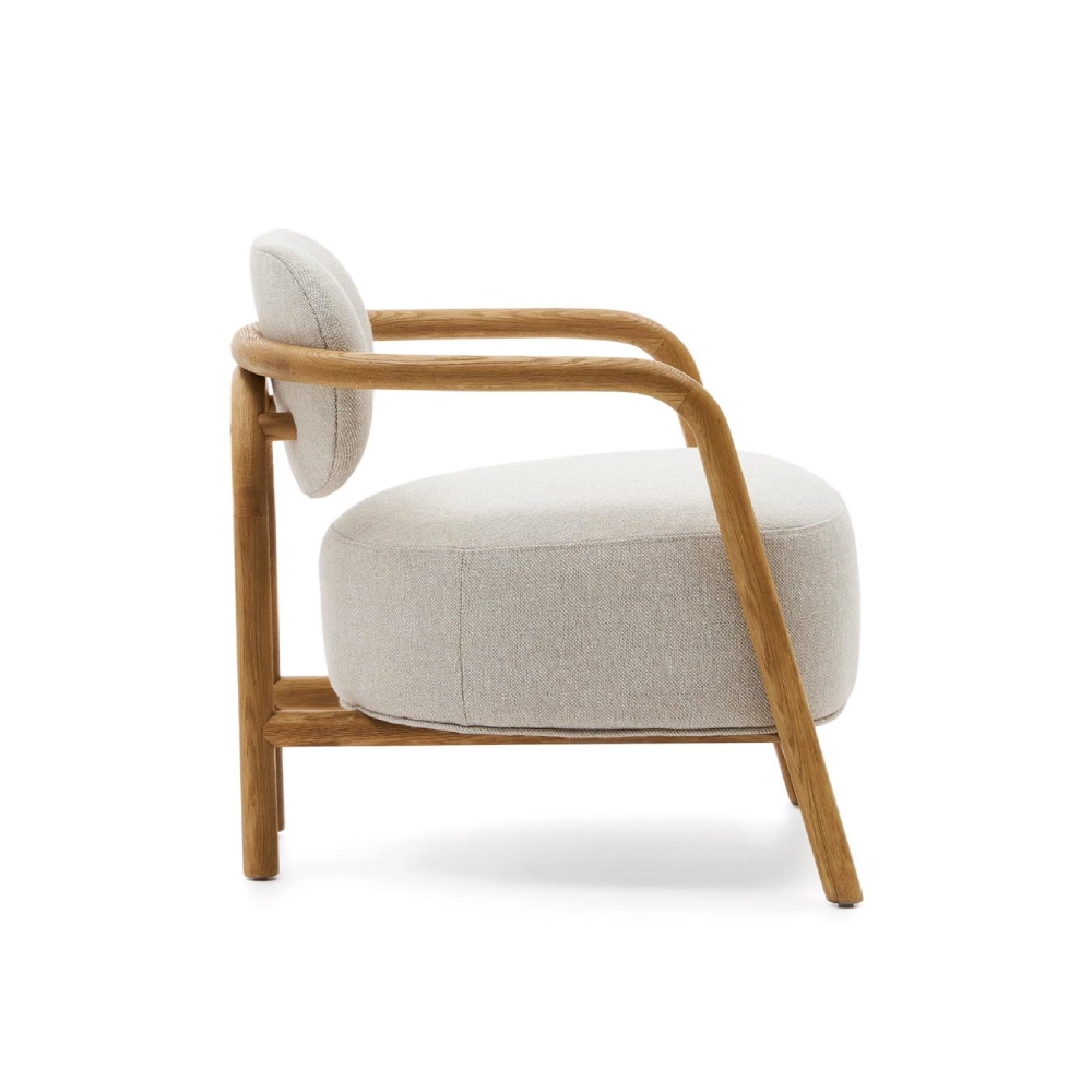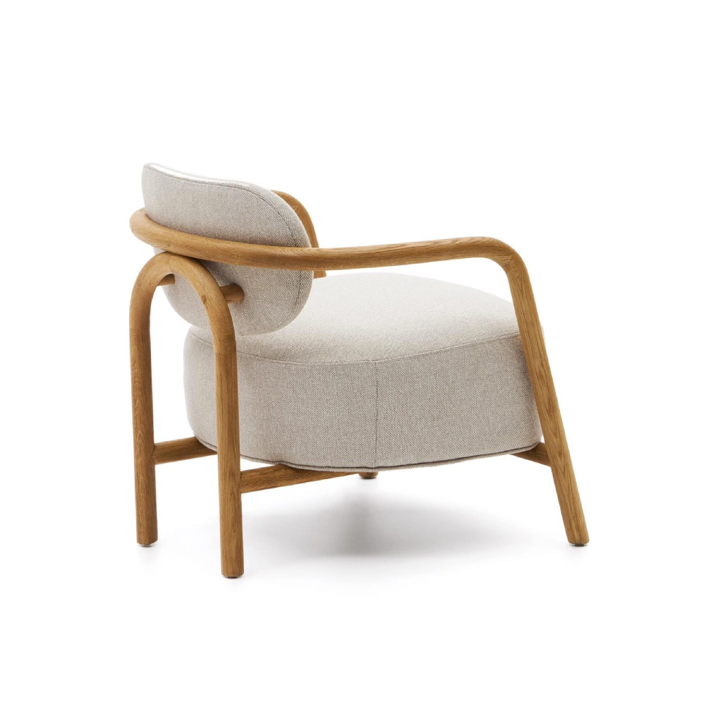 Cadeirão com braços em carvalho estofado bege Melki