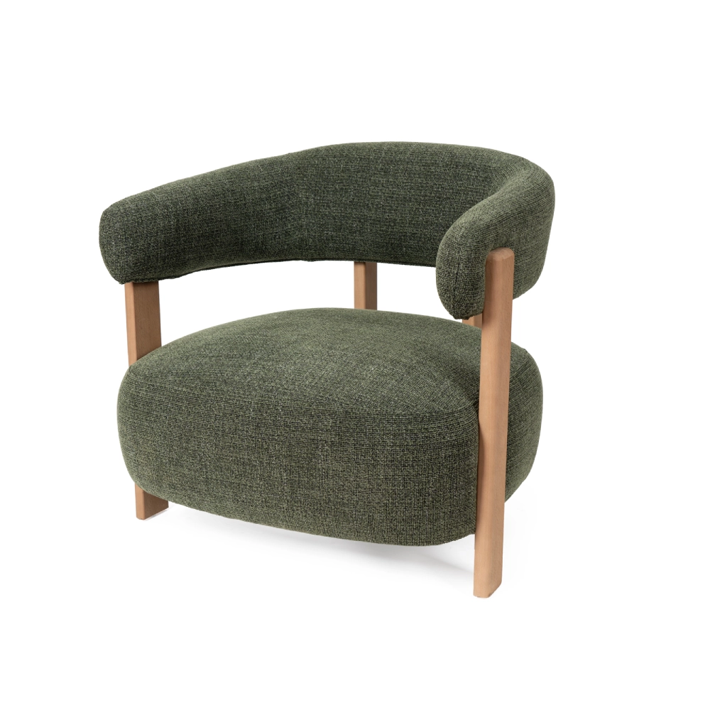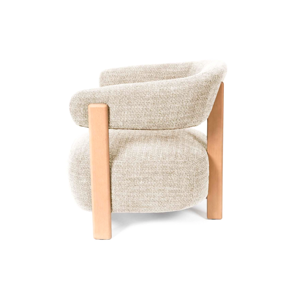 - A poltrona Manila cativa à primeira vista com sua estética acolhedora e orgânica, onde a estrutura em madeira maciça de faia se combina com um assento generoso e um encosto envolvente que convida ao relaxamento.