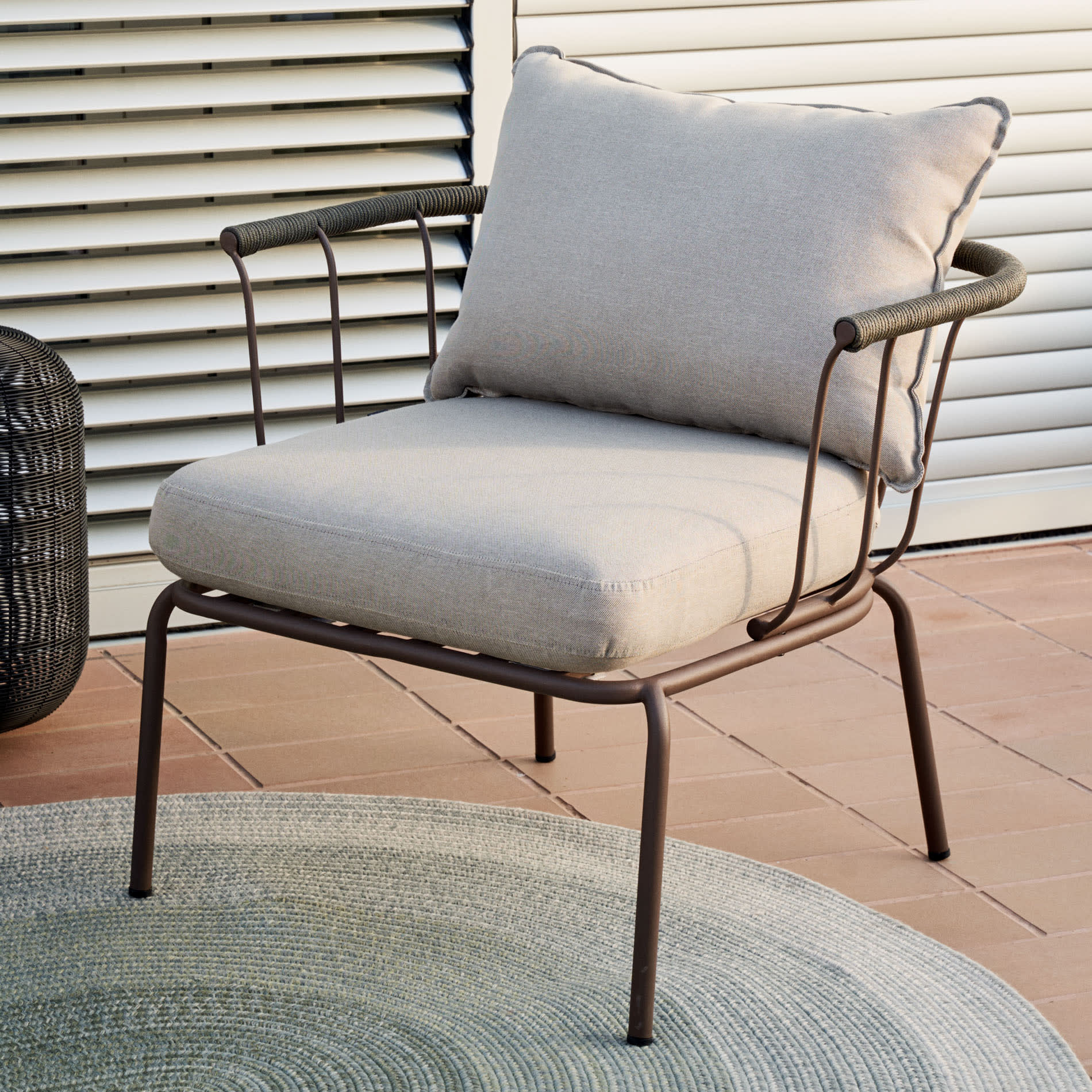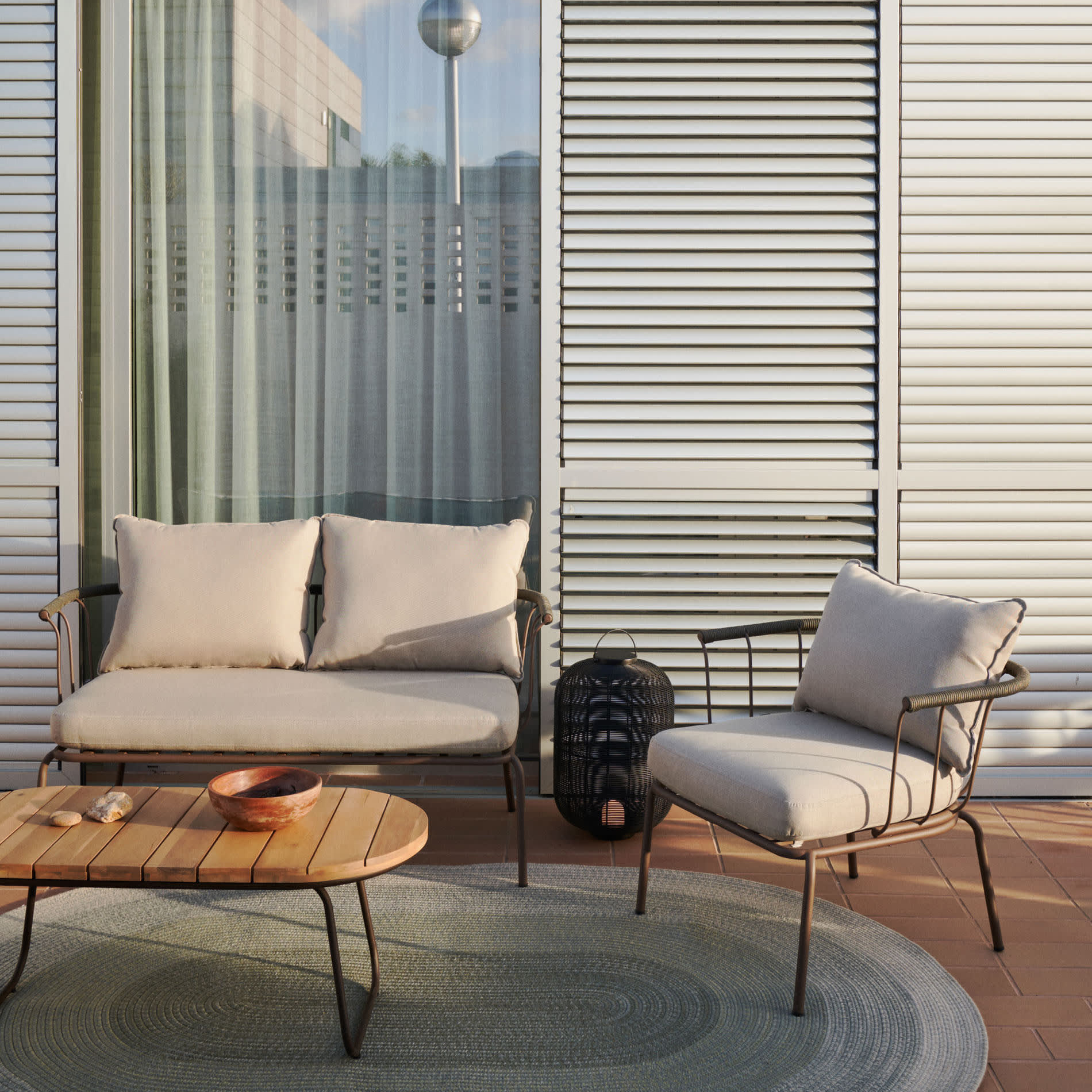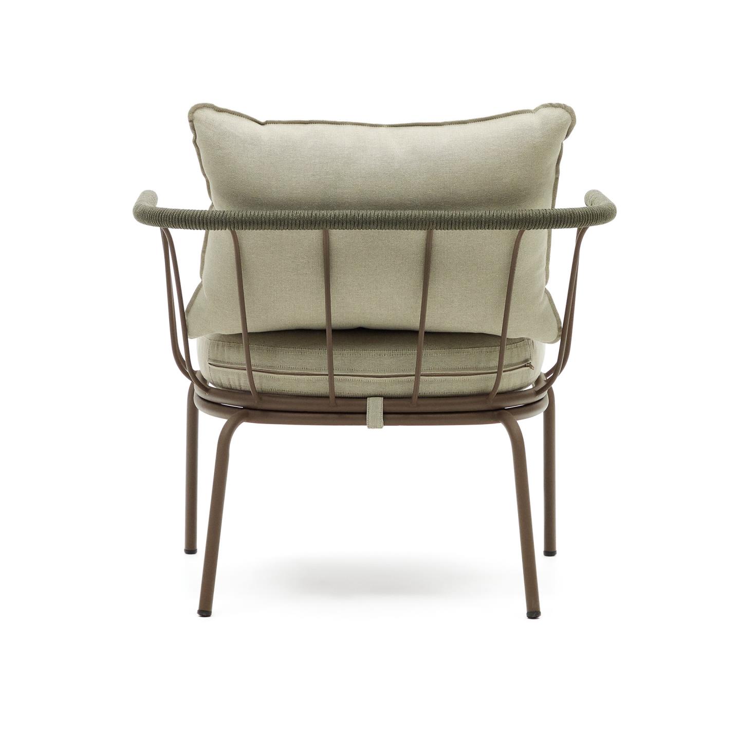 - Destaca-se pelo design arredondado e detalhado com estrutura em metal revestida com corda de poliéster.