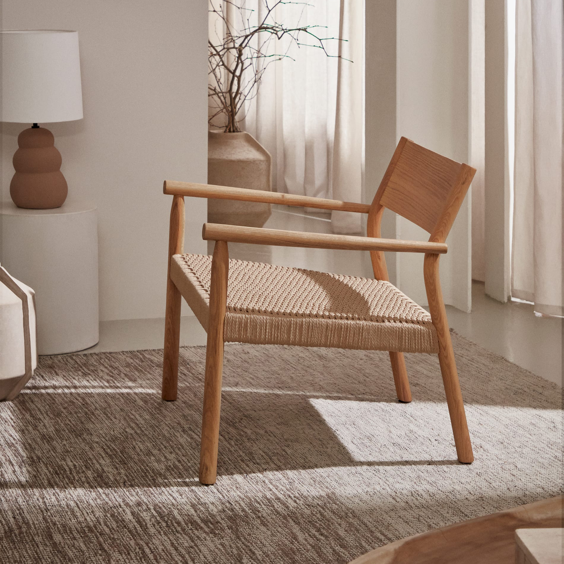 Cadeirão Yalin, madeira carvalho/corda