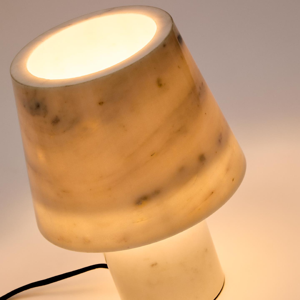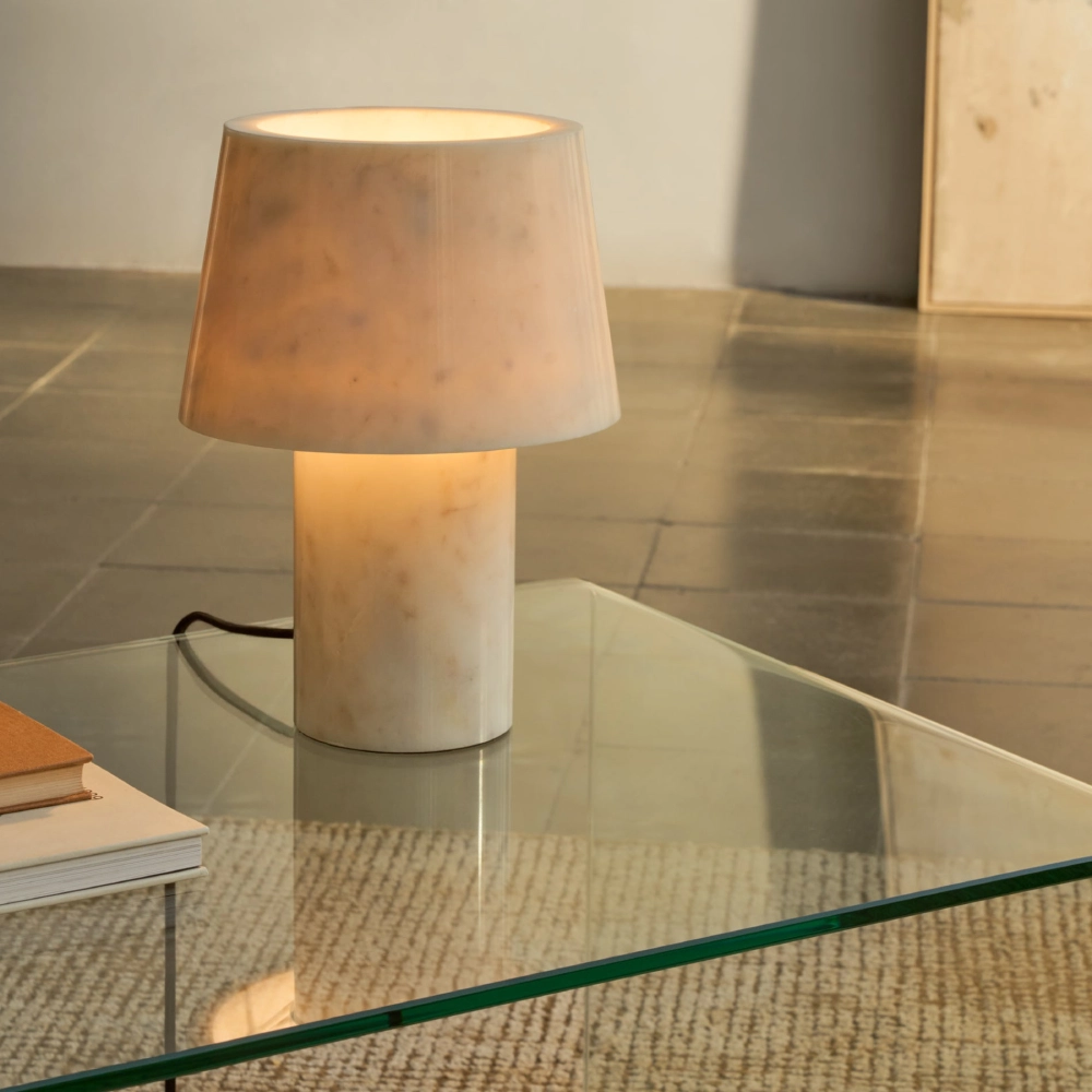 - O candeeiro de mesa Alaros combina a nobreza do mármore branco com um design puro e escultural.