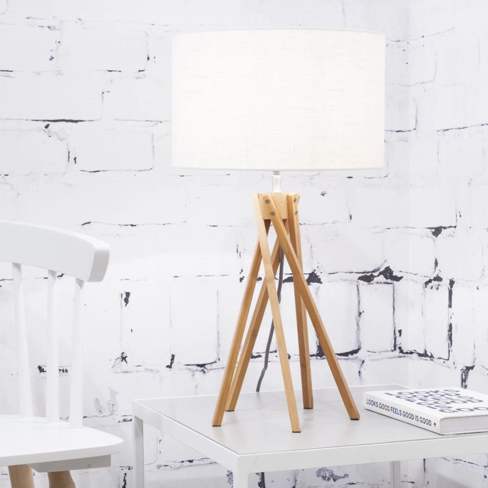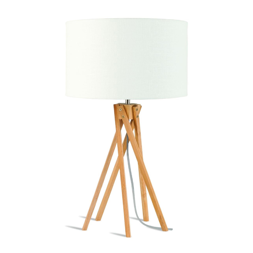 - O candeeiro de mesa Kilimanjaro conjuga a textura do bambu com um abajur em linho natural, agora com tonalidade mais suave e neutra.
