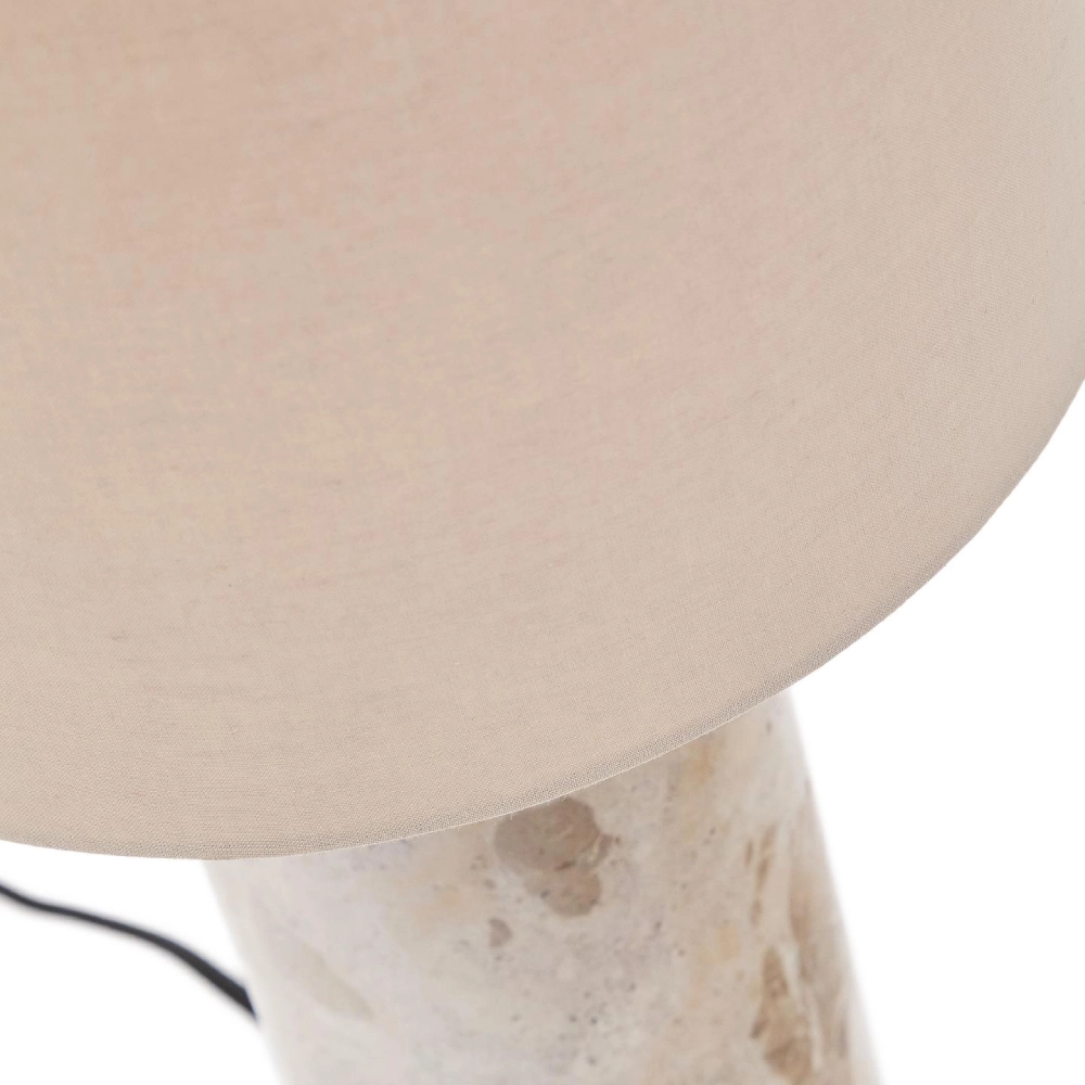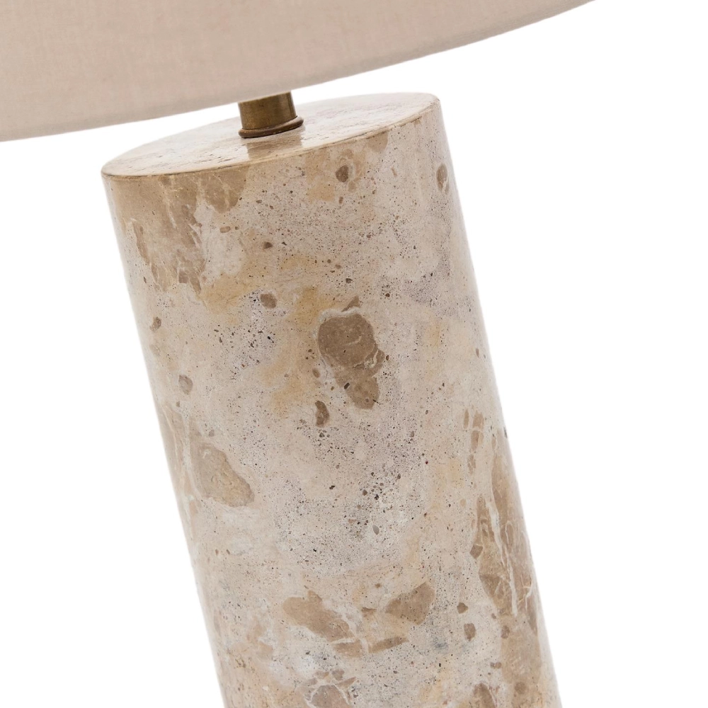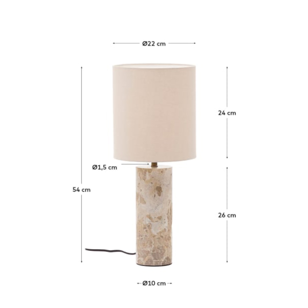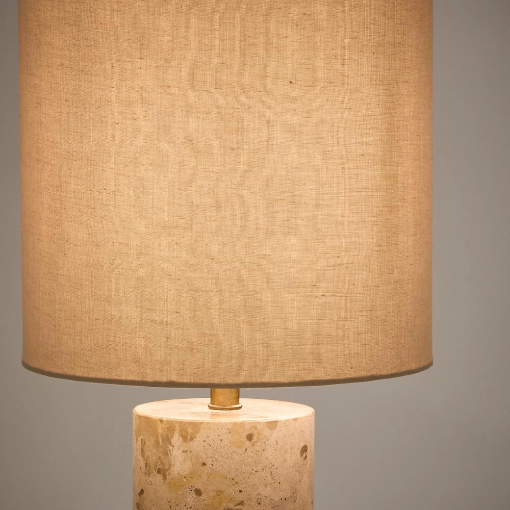- Com uma base cilíndrica em mármore e abajur em linho natural, o candeeiro de mesa Rize destaca-se pelo contraste elegante entre materiais.
