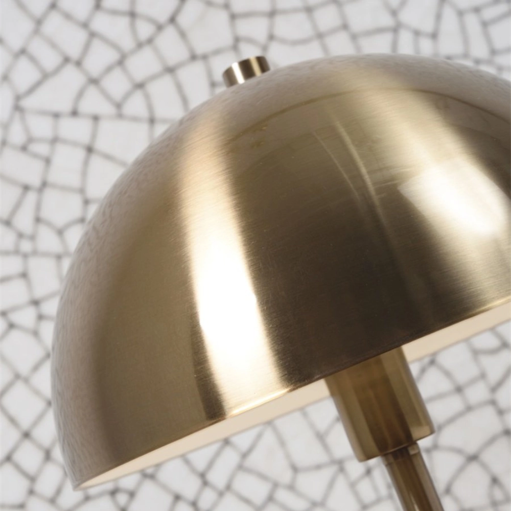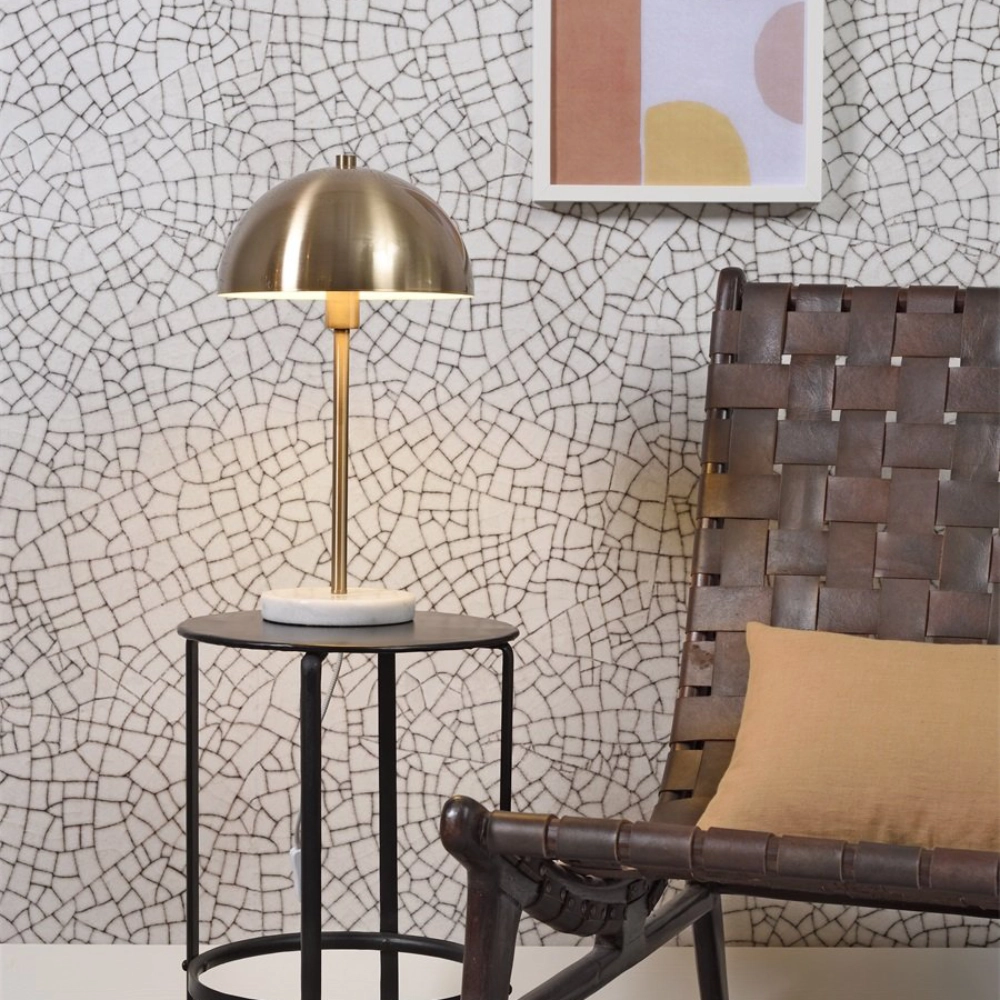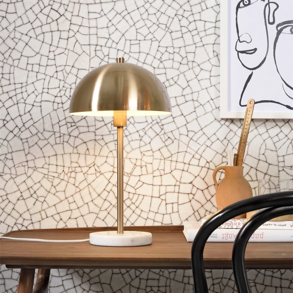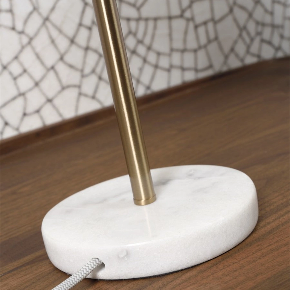 - O candeeiro de mesa Toulouse combina o brilho discreto do metal dourado com a solidez do mármore, criando uma peça elegante e estruturada.
