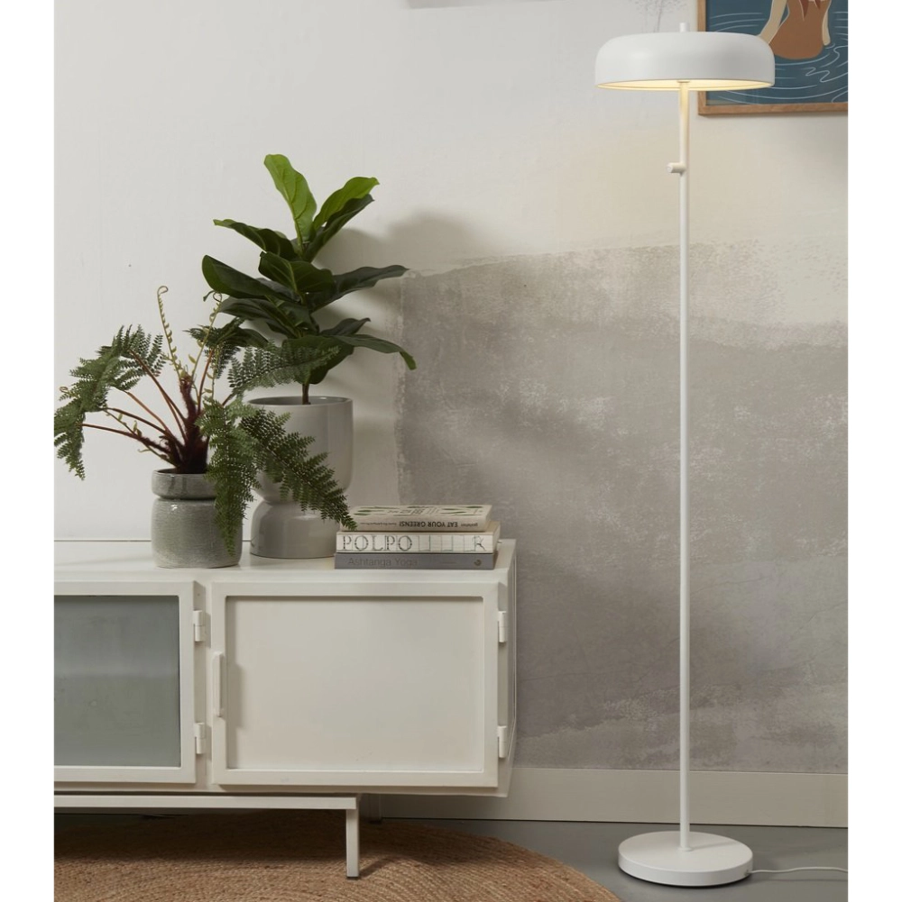 - O candeeiro de pé Porto distingue-se pelo seu design em forma de cogumelo e pela estrutura fina em metal, ideal para criar uma iluminação funcional e subtil em qualquer divisão da casa.