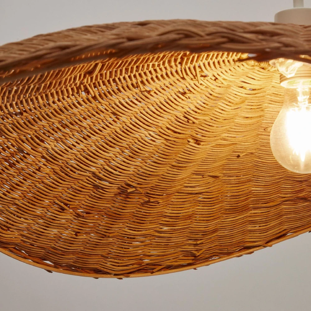- Feito em rattan natural entrançado, oferece uma iluminação suave e difusa, perfeita para criar ambientes acolhedores e arejados.